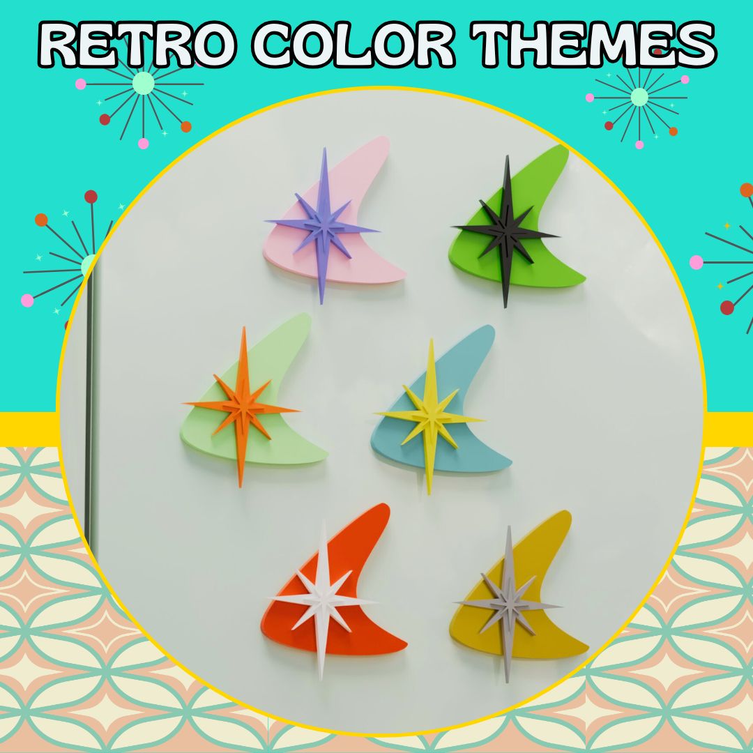 Whether you're a fan of atomic-era design or simply looking to add some vintage flair to your fridge, the Boomerang Starburst Retro Magnet makes an ideal choice. Its playful design and vibrant colors are sure to turn heads and bring joy to your space.