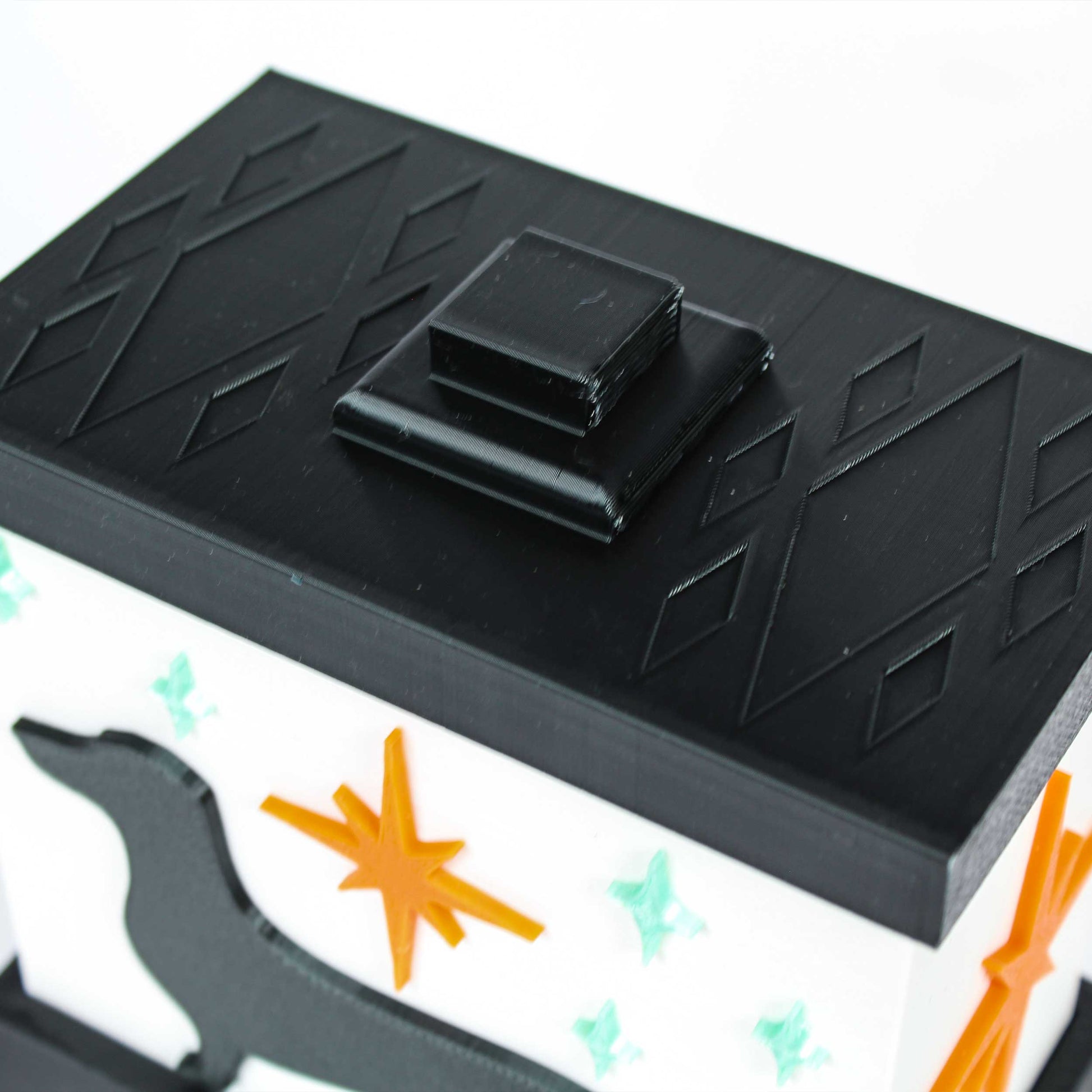 Not only is the Atomic Dog Lamp a conversation starter, it's also energy efficient. The LED light uses less energy than traditional bulbs, which means it's not only better for the environment, it's also better for your wallet. Plus, we've used our special black PLA material to give it a shimmer and retro look, along with mint and orange accents. This way, the lamp is not only practical but also an unique piece of décor.