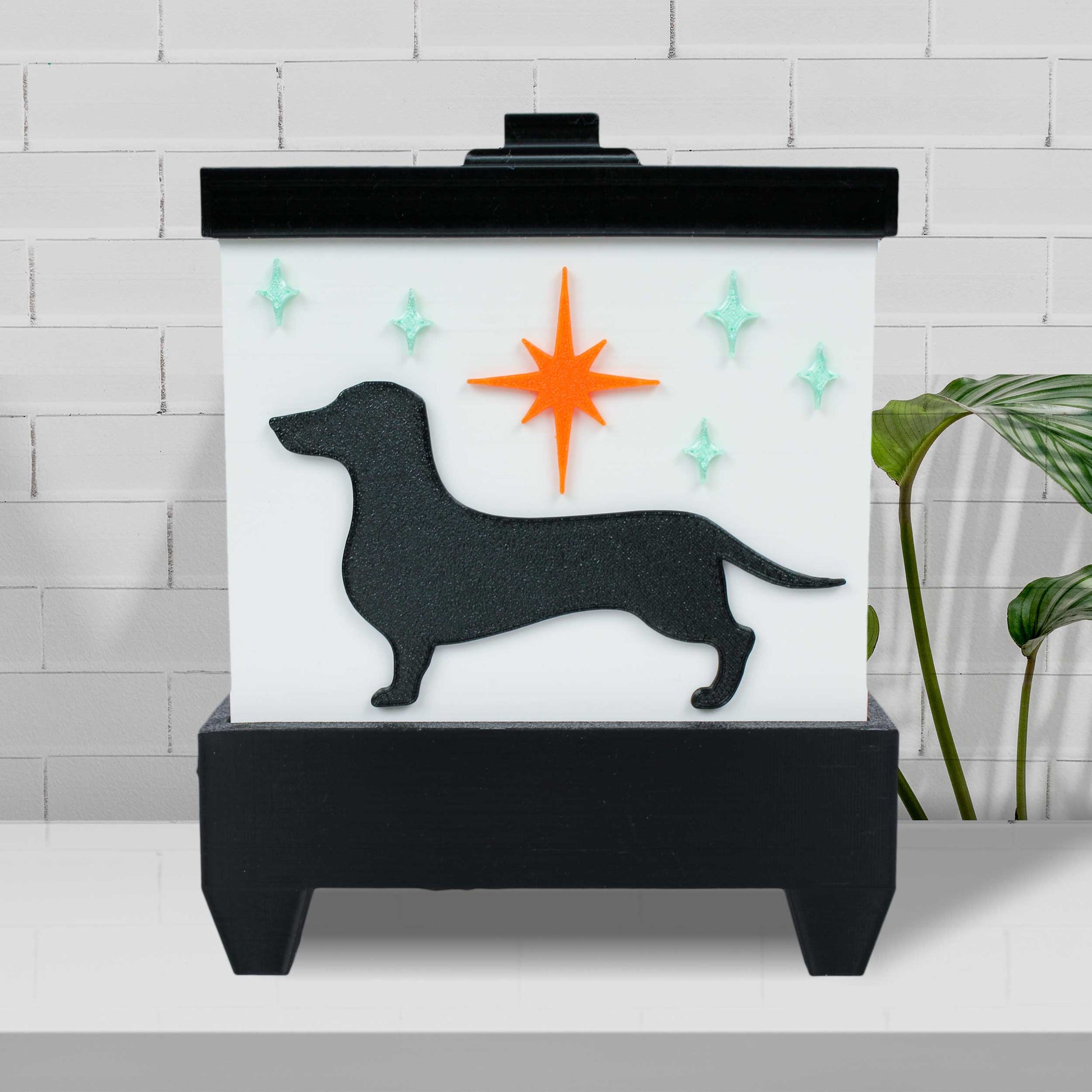 Overall, the Atomic Dachshund Dog Lamp is a practical and chic choice for anyone looking to add a touch of personality to their home. Its energy-efficient LED light, dimmable feature, and unique 3D printed design make it a perfect addition to any home. Don't wait, light up your life with the Atomic Dachshund Dog Lamp today!"
