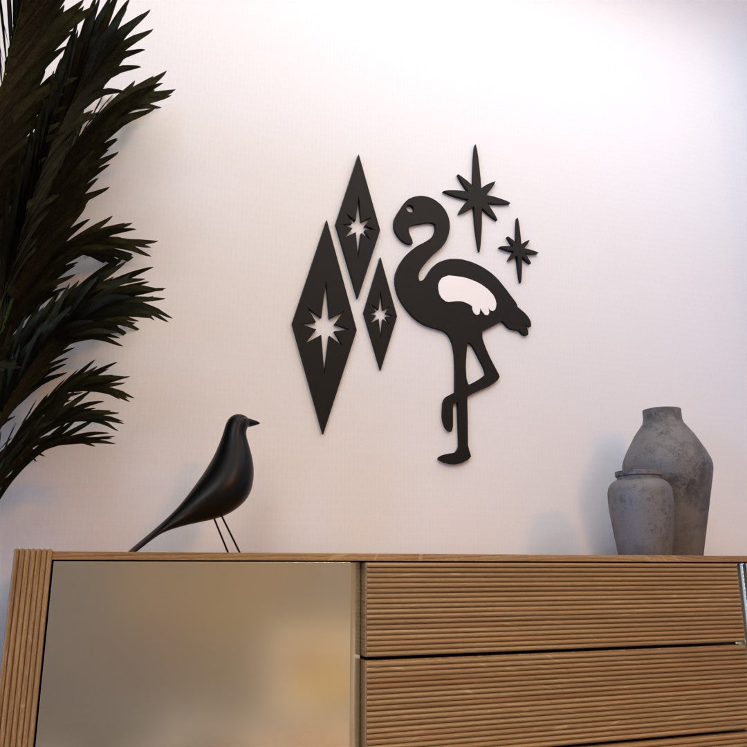 Ride the wave of retro flair! Elevate your living room, office, bedroom, or kitchen with our Atomic Flamingo Wall Decor.