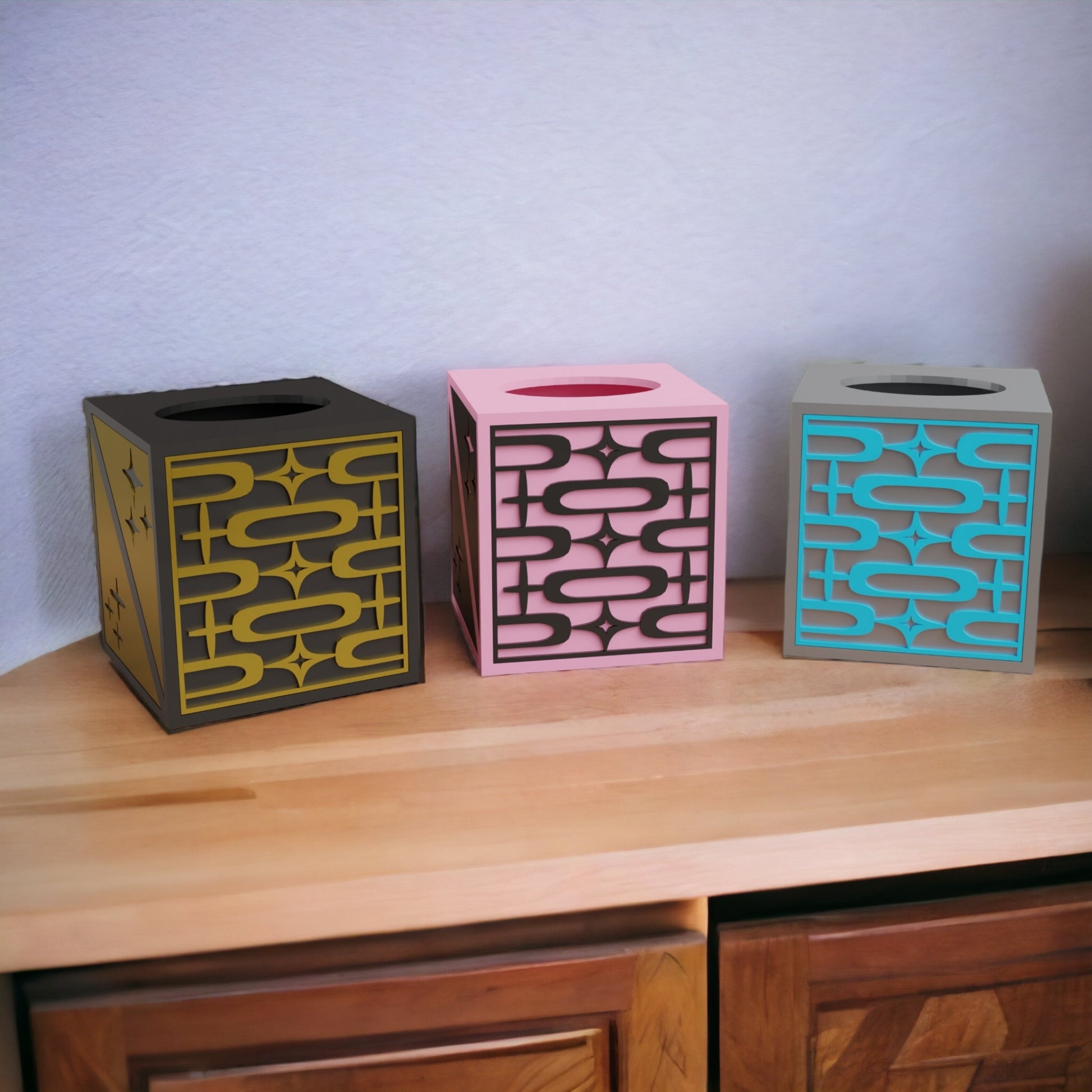 Revamp your Midcentury home decor game with our adorable Atomic Ovals tissue box cover! Say goodbye to unsightly tissue boxes that disrupt your stylish space. Get ready to add a touch of retro charm to your home while keeping it cute and functional.