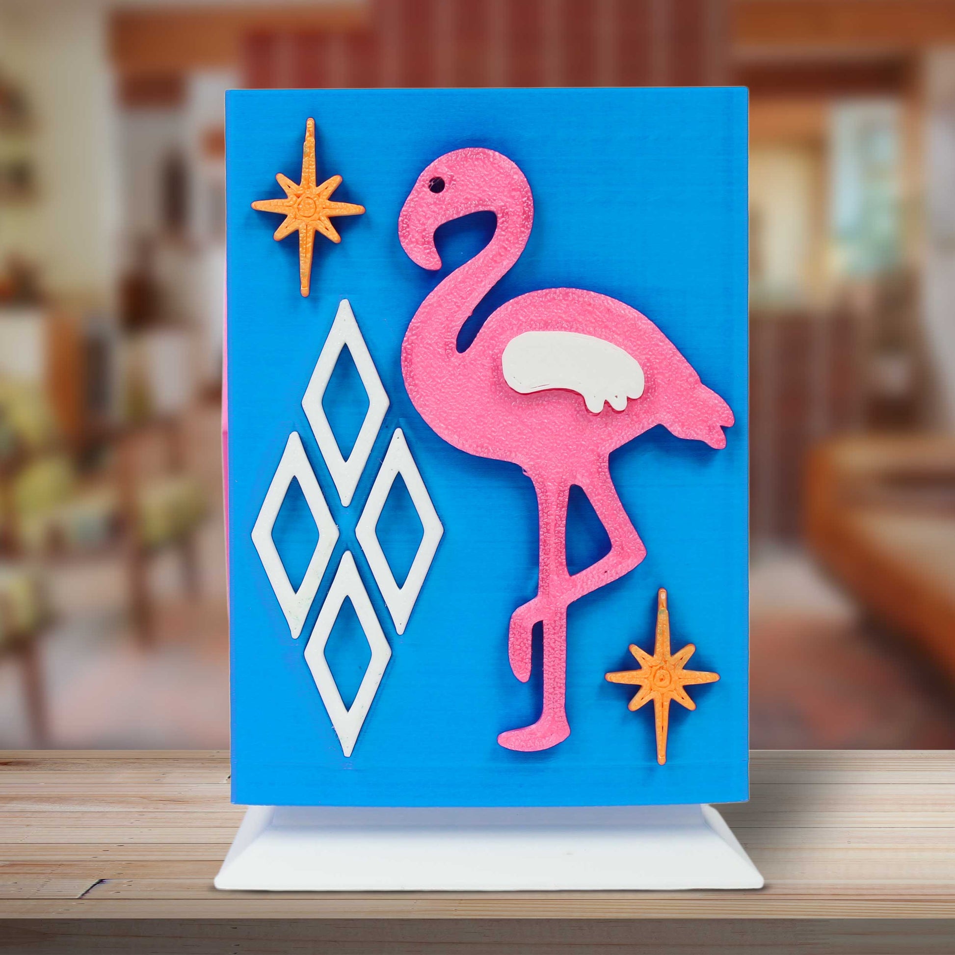 But this organizer isn't just for desks, it's perfect for decluttering kitchen counters, nightstands and vanity stations too. Its lightweight yet durable design makes it easy to move around your home or office. And with its high infill and tensile strength, it's built to last. Upgrade your workspace and elevate your organizational game with our Midcentury Modern Atomic Flamingo Desk Organizer today.