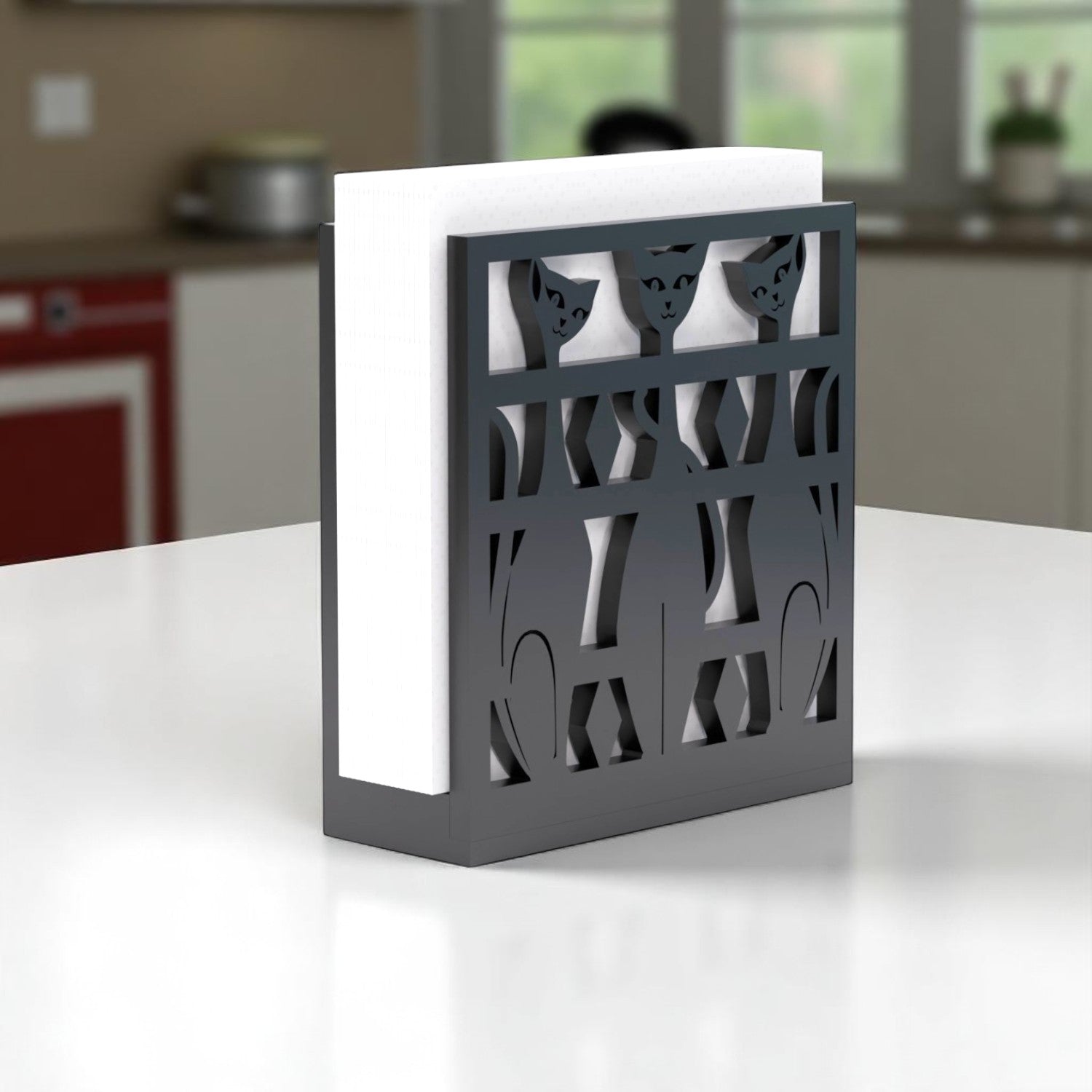 🐾 Step into the purr-fect retro vibe with the Atomic Space Cats Napkin Holder from RetroLayers. Featuring a trio of sleek, stylized mid-century cats framed in atomic diamonds, this playful design is a showstopper for lovers of vintage charm and feline flair.