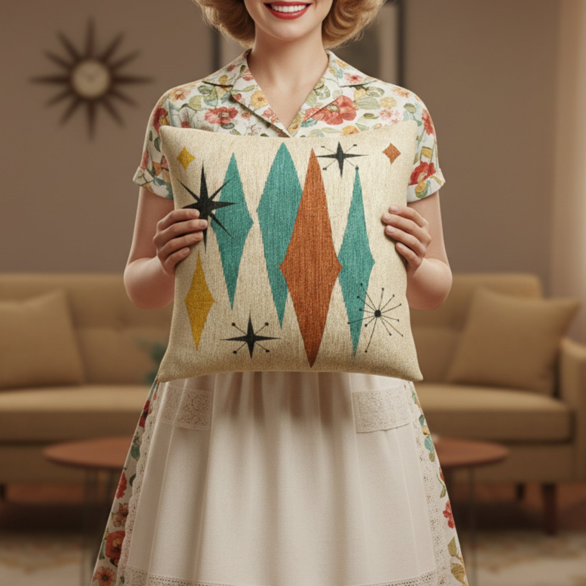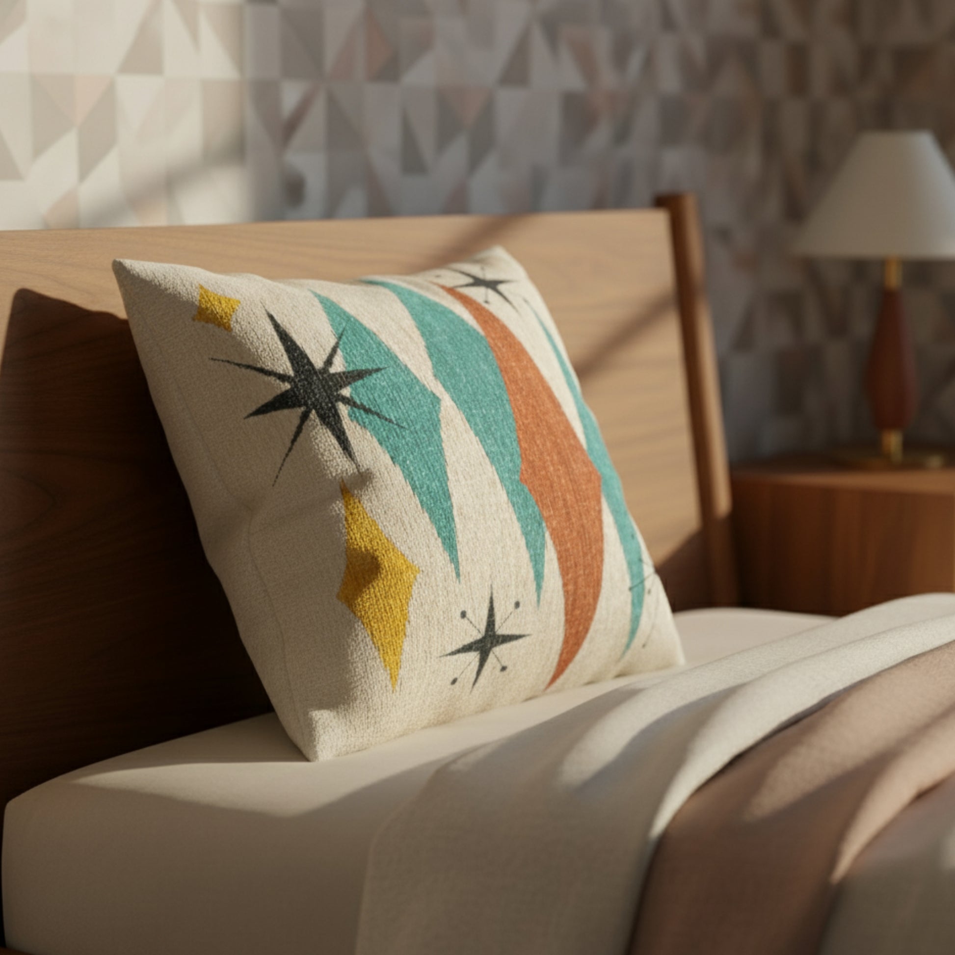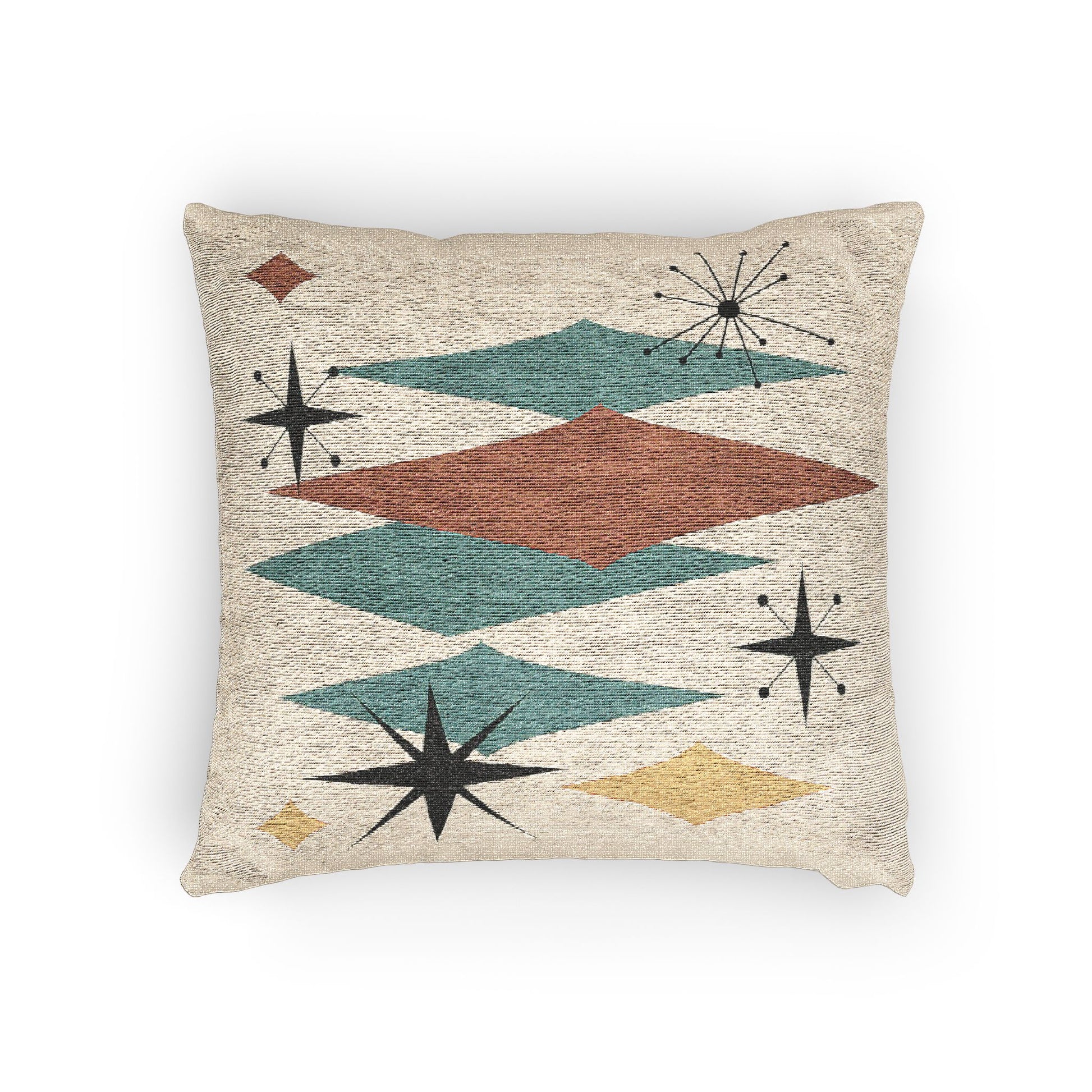 Atomic Starburst Triple Diamond Pillow Mid Century Modern Woven Tapestry Cushion Retro 1950s Decor