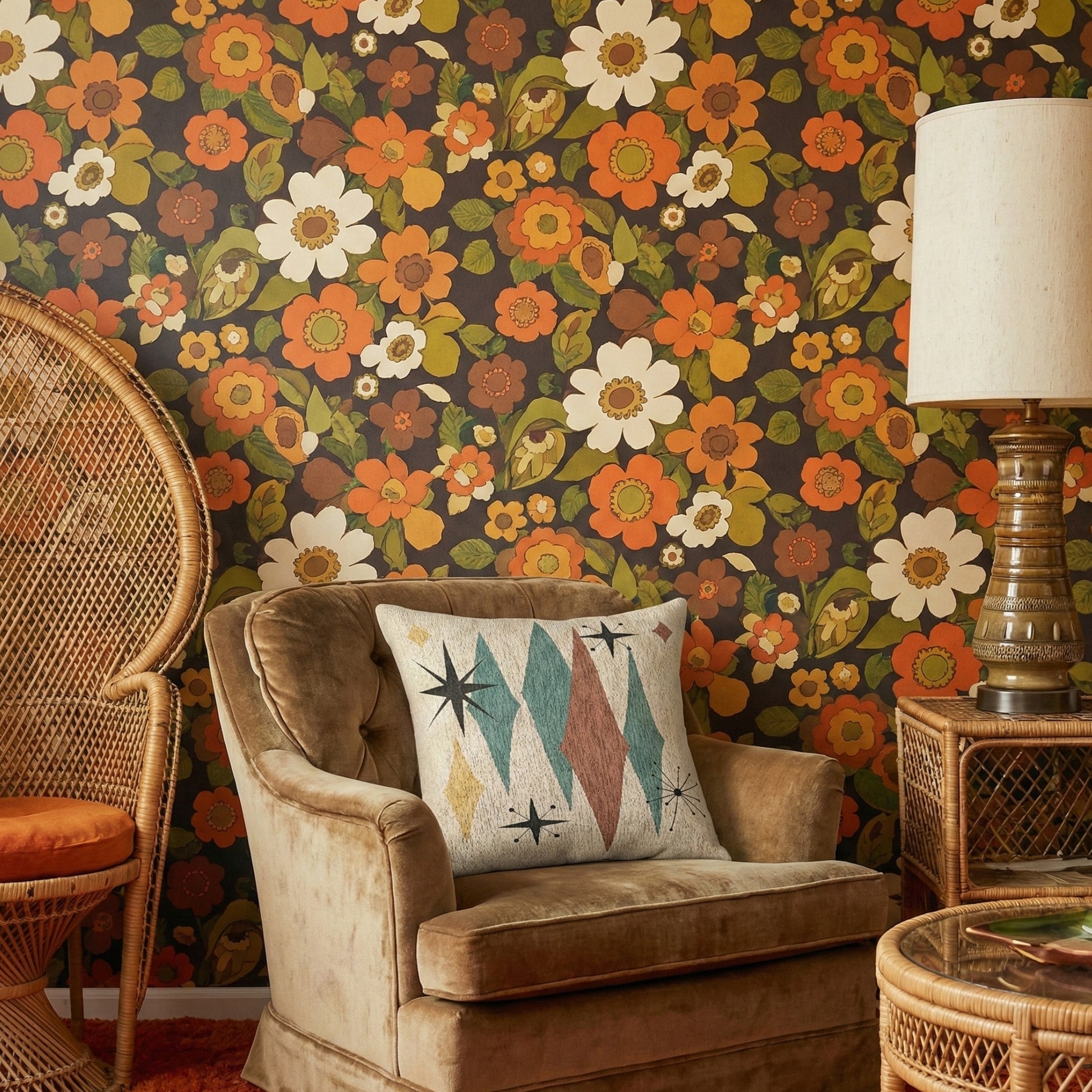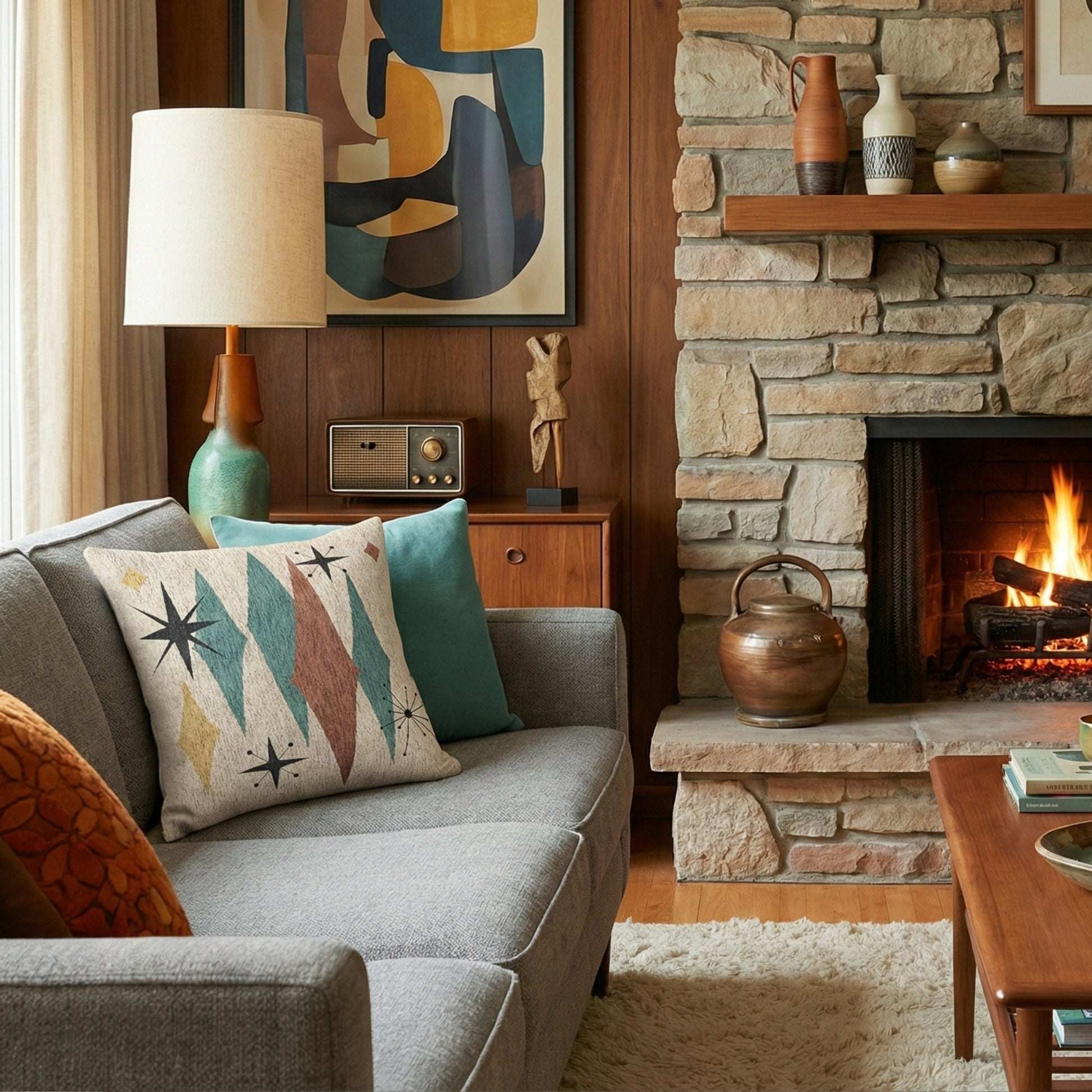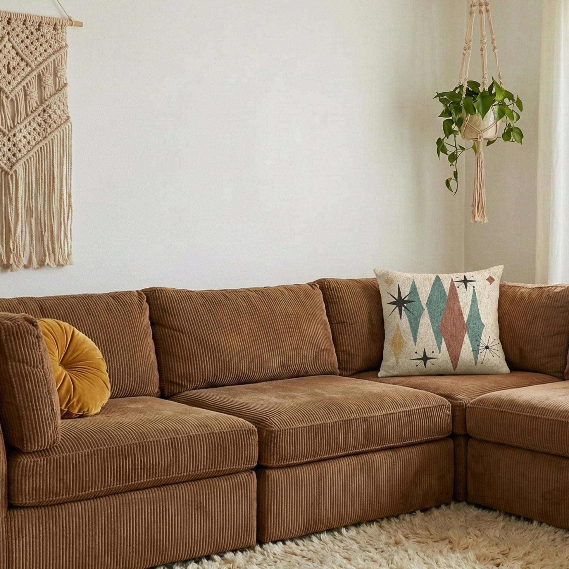 Atomic Starburst Triple Diamond Pillow Mid Century Modern Woven Tapestry Cushion Retro 1950s Decor