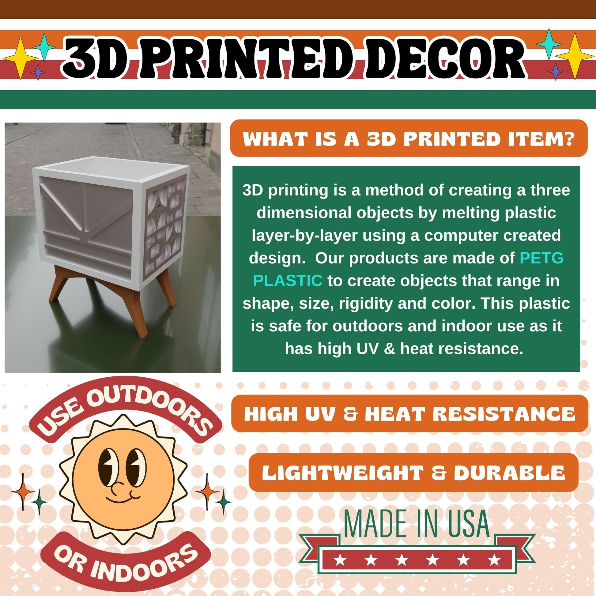 Please note that every Console Planter is individually 3D printed, resulting in a truly unique piece. While we strive for perfection in each and every item, slight variations or blemishes may occur, which only add to the one-of-a-kind charm of your planter. However, rest assured that any such variations do not affect the quality of your Astro Orb Planter. Each one is crafted with the utmost care and attention to detail, ensuring that you receive a high-quality product that will last for years to come.