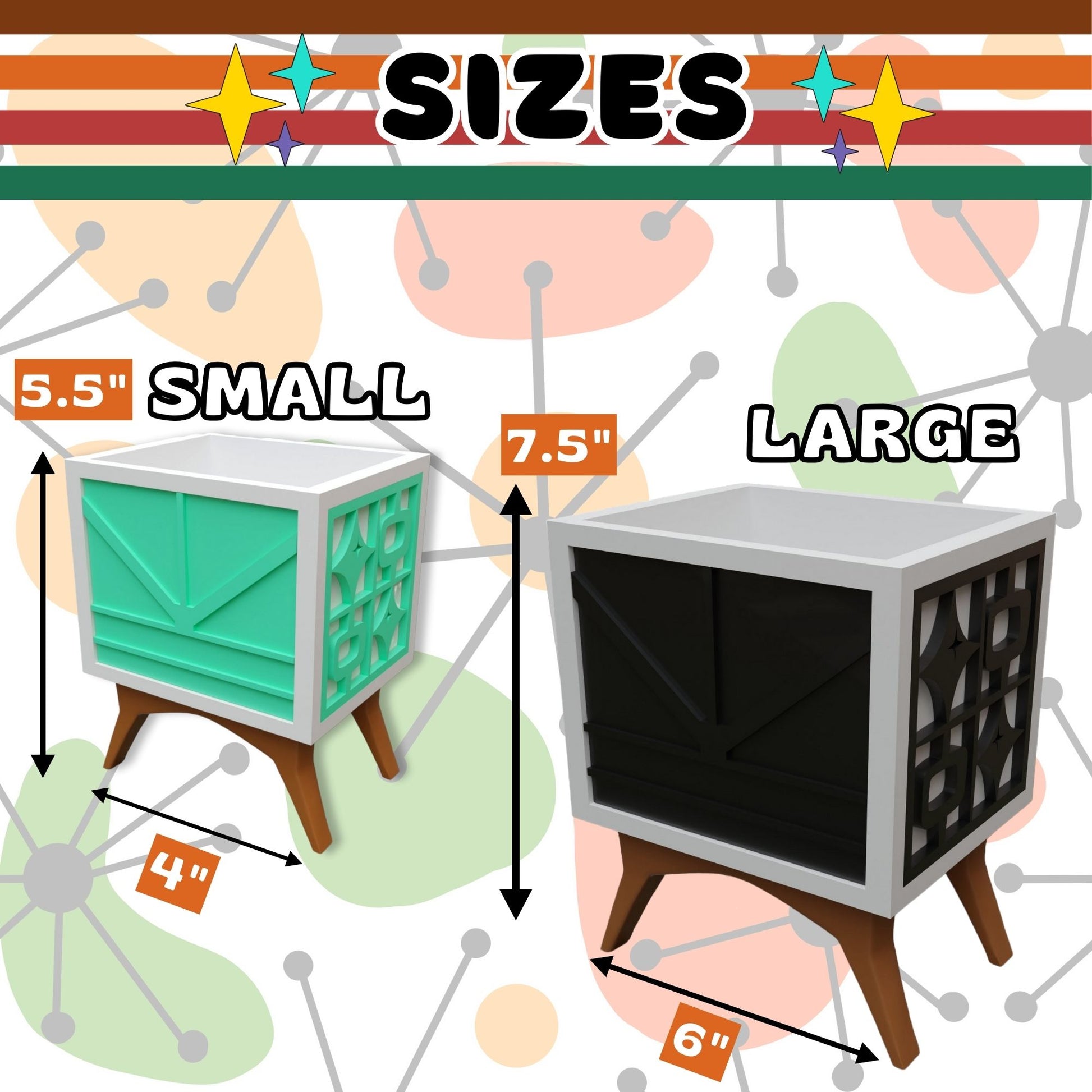 Introducing our new Console Planter, a perfect addition to your midcentury modern-inspired home! This retro vintage-style planter comes with a twist of modern design, combining the iconic aesthetics of the midcentury modern era with a unique and functional twist.