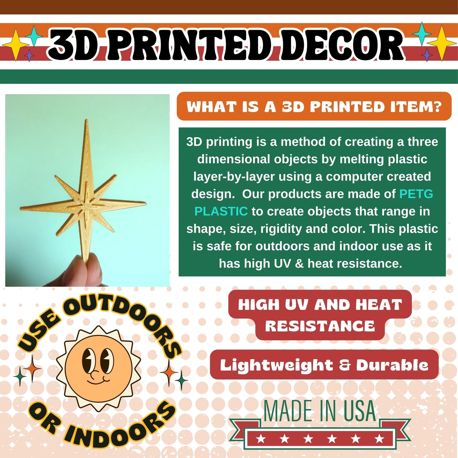 Introduce a new level of vintage elegance to your kitchen with our Midcentury Starburst Magnets. These eco-friendly and biodegradable 3D printed thermoplastic magnets are designed to stick to any metal surface in your home. Each starburst design is embedded with strong magnets making them easy to use on your refrigerator or any flat metal surface.