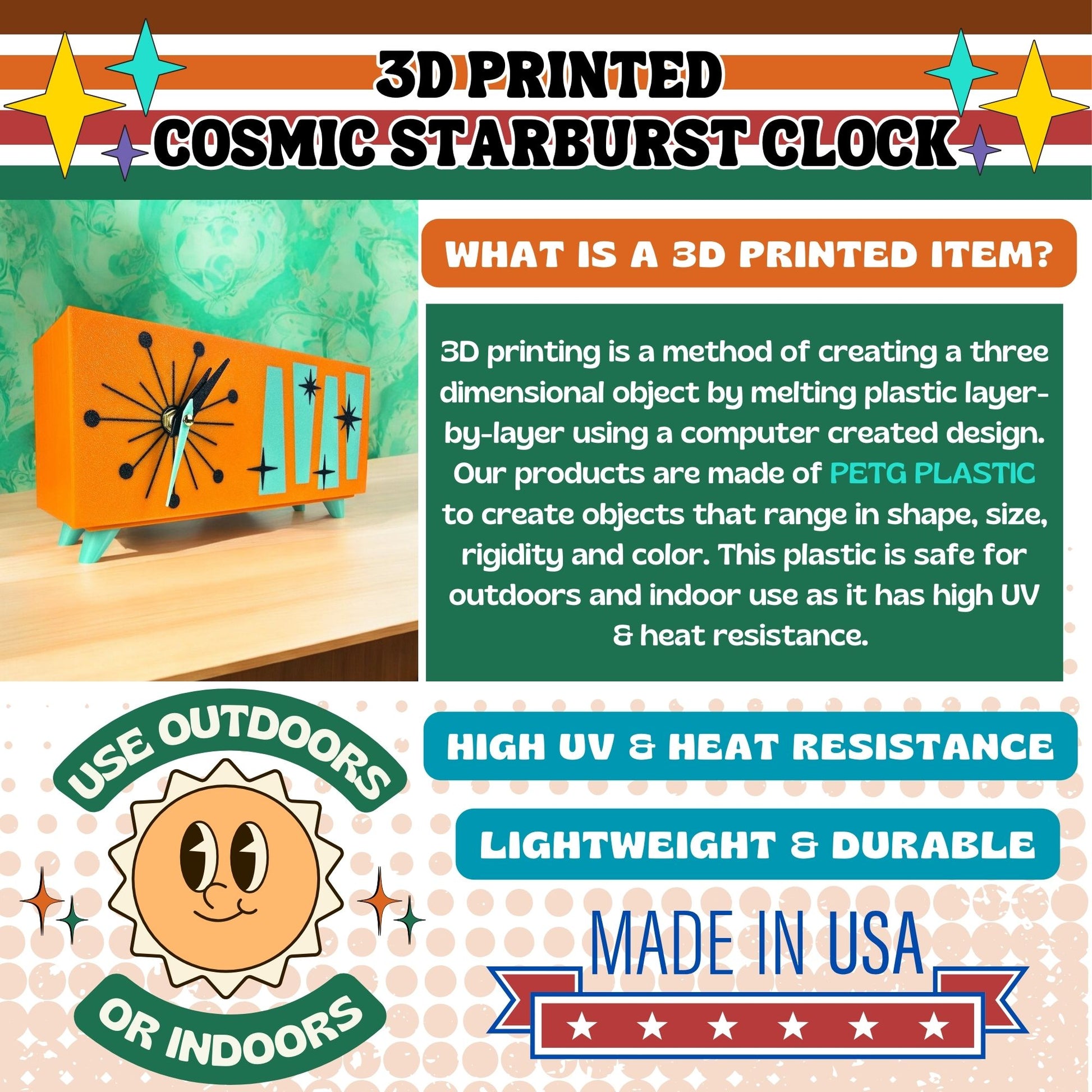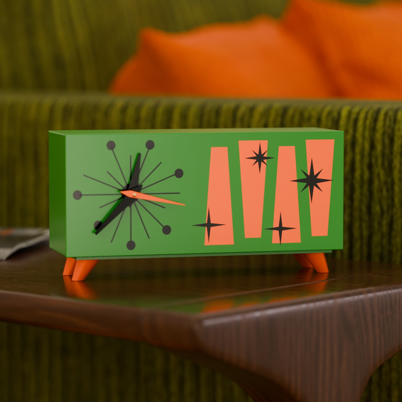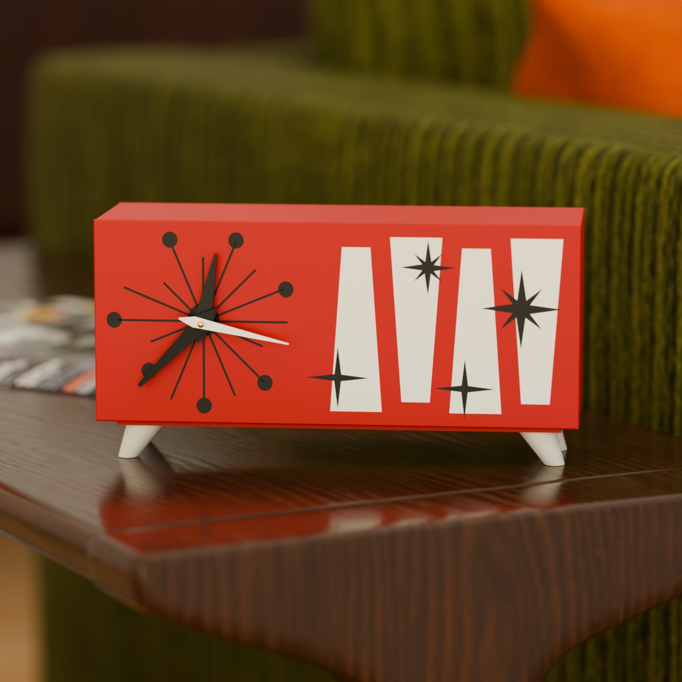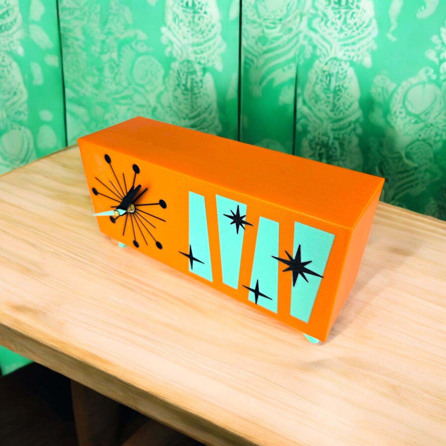 Whether you're an enthusiast of mid-century modern decor, atomic-age collectibles, or futuristic retro design, the Cosmic Starburst Desk Clock is a bold fusion of nostalgia and innovation. Perfect for home offices, living rooms, or any space needing a pop of space-age personality.