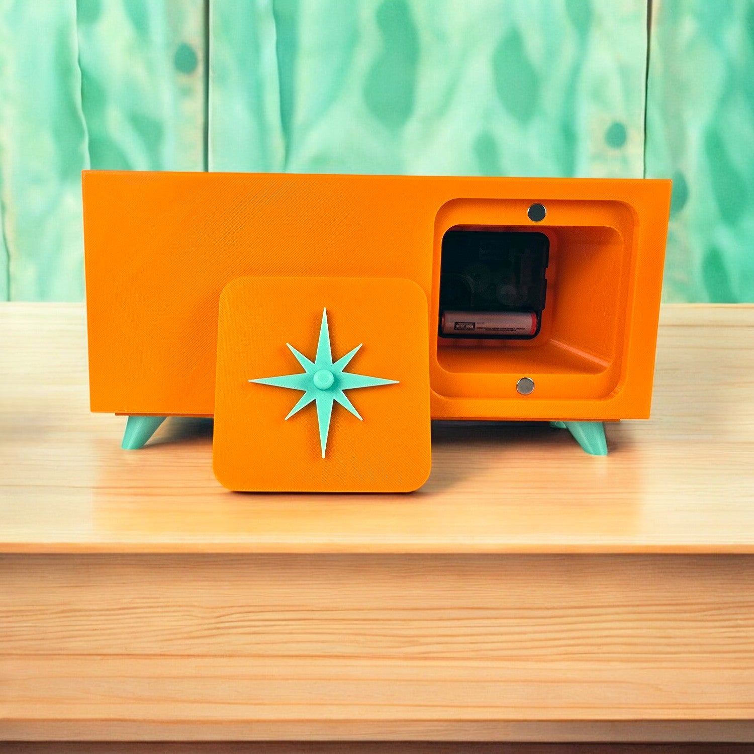 Starburst Cover: Magnetically attached for effortless access to the clock mechanism.