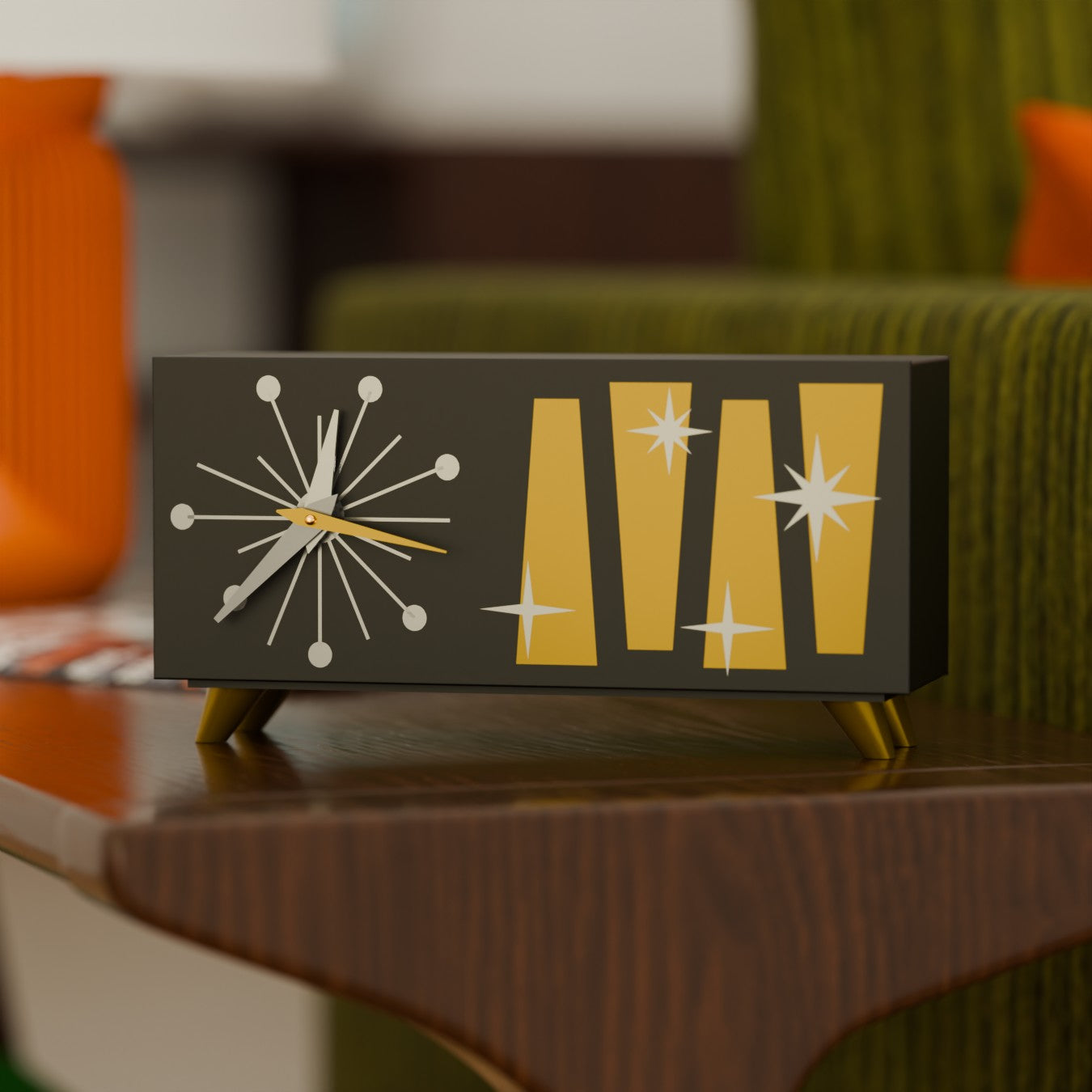Cosmic Starburst Desk Clock – A Retro Space-Age Timepiece.