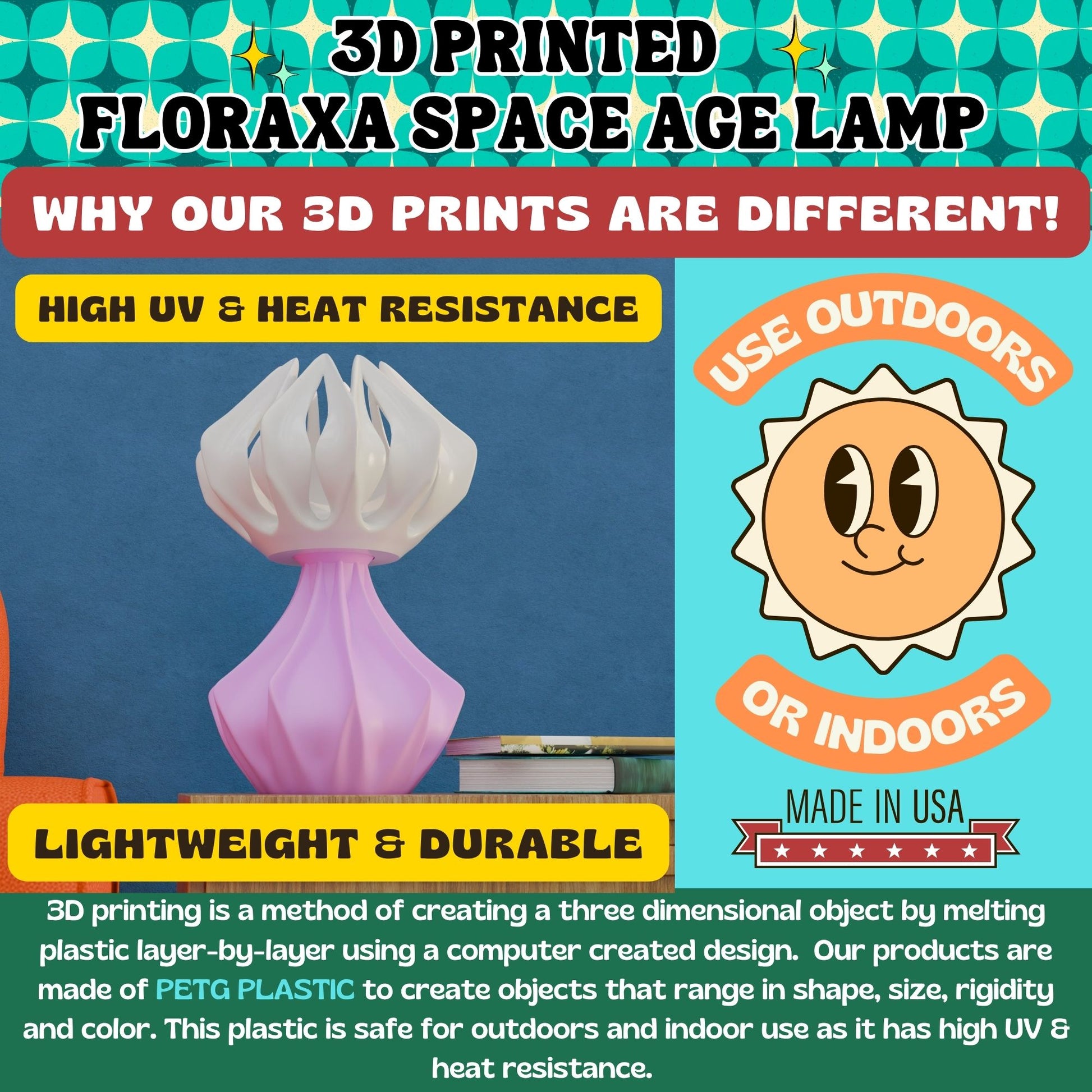 Each Floraxa Lamp is made to order with care. Please allow for minor variations due to the nature of 3D printing. We guarantee 100% satisfaction—and a one-of-a-kind piece you won’t find anywhere else.