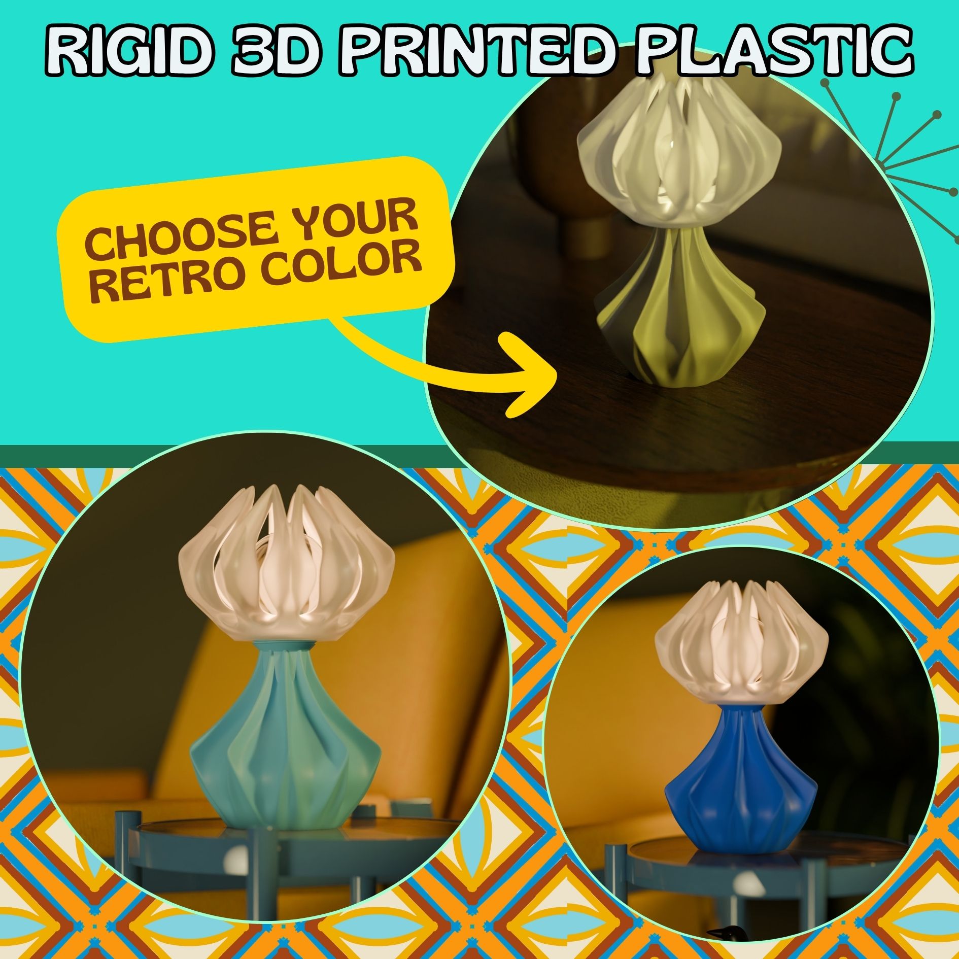 The Floraxa Lamp is a tribute to mid-century modern design, but reimagined with a whimsical, space-age twist. It’s part retro rocketship, part alien flower—perfect for lovers of atomic-era design, vintage-inspired interiors, and modern home decor.