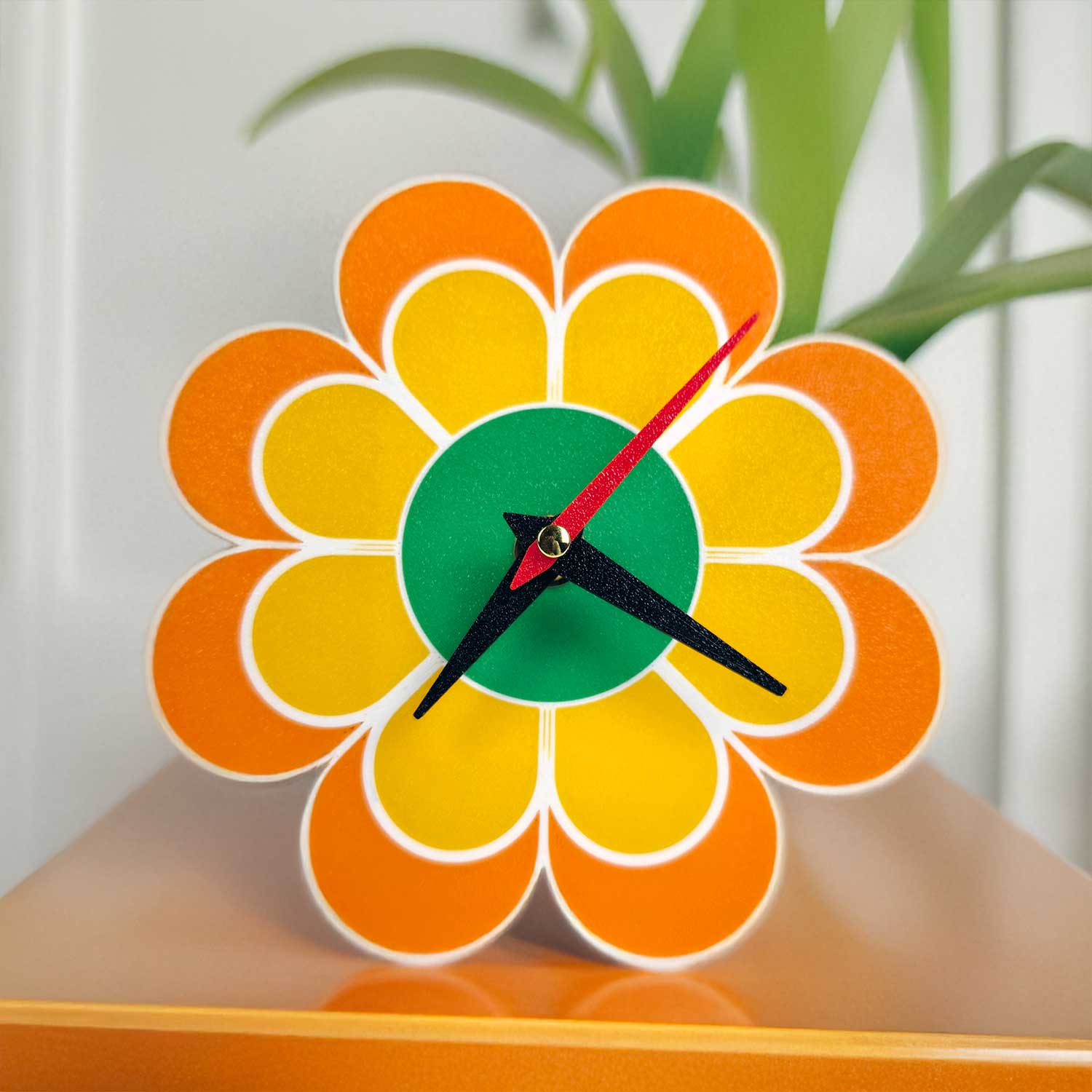 Bring a pop of vibrant 1970s nostalgia to your home with the Flower Power Desk Clock! Designed for those who love bold, cheerful decor, this whimsical flower-shaped clock is the perfect way to add a splash of retro charm to any room. Whether you're styling a mid-century modern space, a colorful boho office, or just love the playful energy of flower power vibes, this clock will brighten your day—literally!