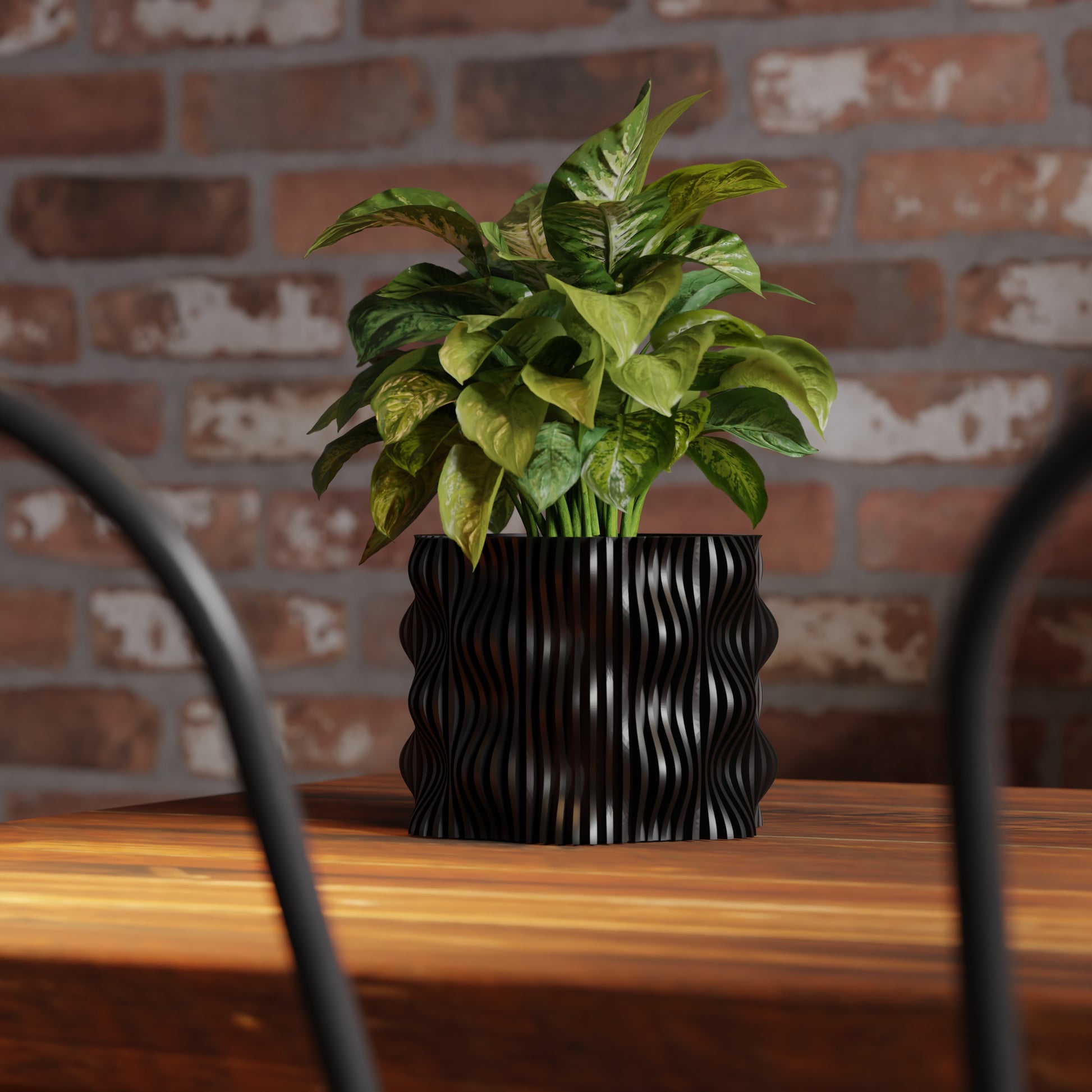 The Joxel Planter is a bold fusion of retro-futurism and space-age aesthetics, featuring a dynamic wavy form that brings a sleek, modern edge to any space.