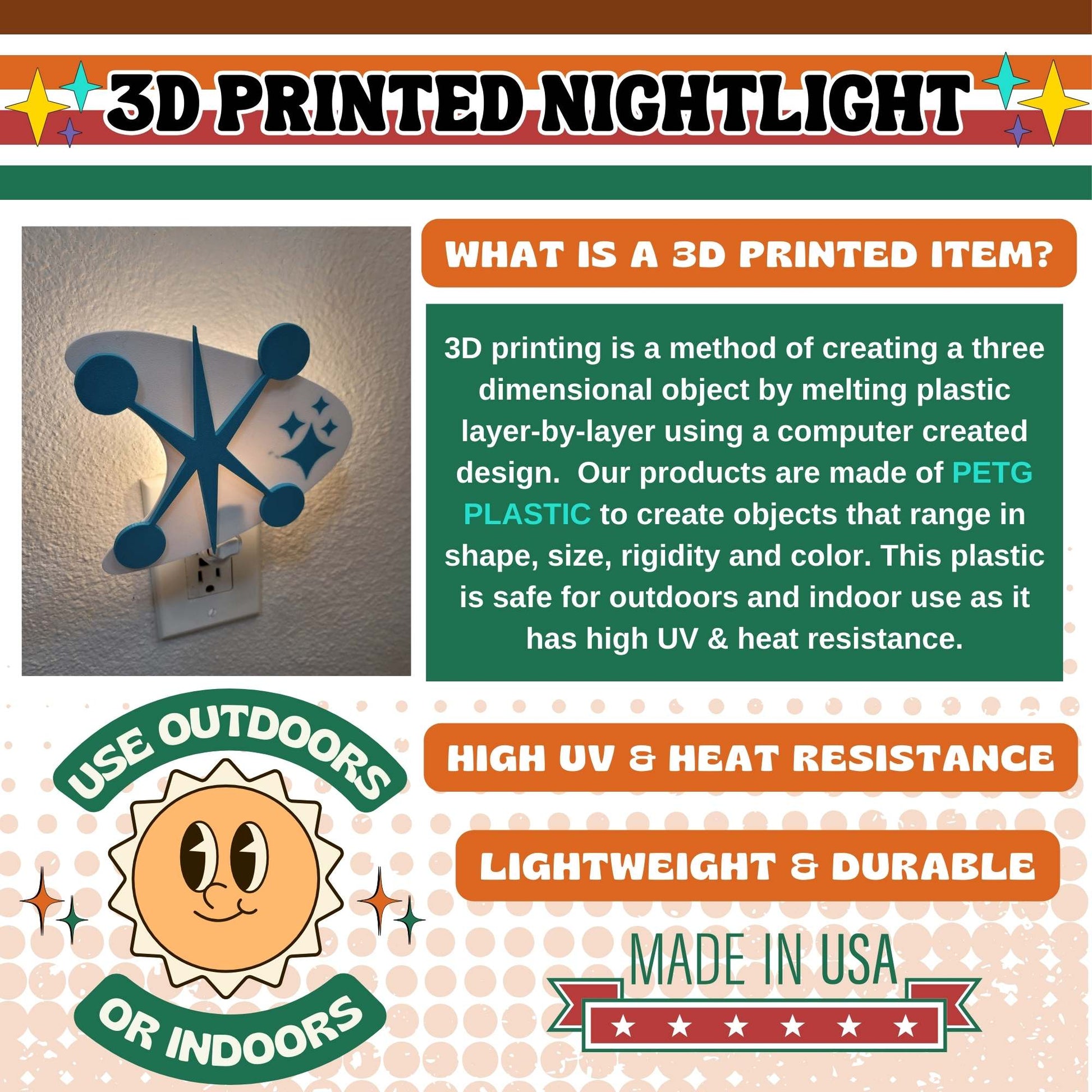 Step into the retro radiant world of illumination with our latest marvel: the Midcentury Jacks & Starburst Night Light! 🌟 Crafted with finesse using top-notch materials and employing cutting-edge 3d printing manufacturing techniques, this charming piece is set to light up your space with a touch of retro elegance.