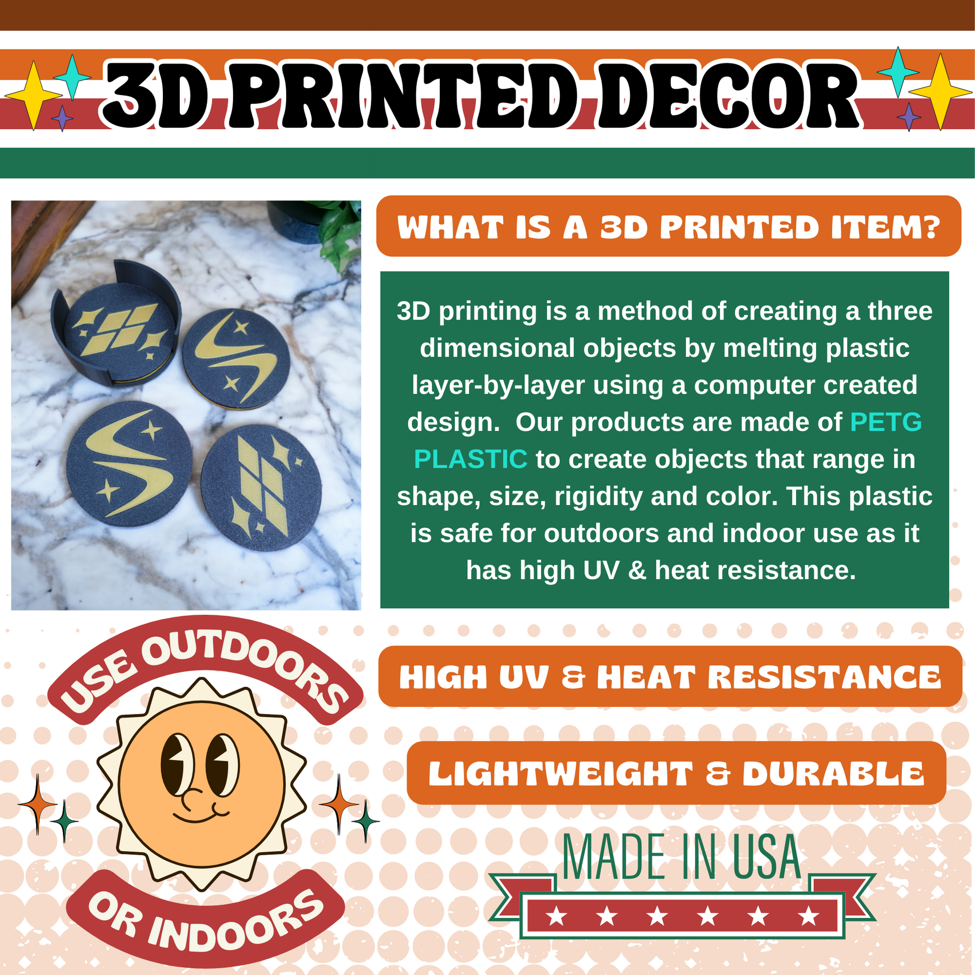 ๐ Set of 4 Coasters: Elevate your entertaining game with this stunning set of four 3D printed coasters. Each coaster features the iconic midcentury modern boomerang and diamond patterns, adding a touch of retro charm to your space. Individually, every coaster in this set features four discreet felt pads on its underside, providing enhanced stability and minimizing any unwanted sliding.