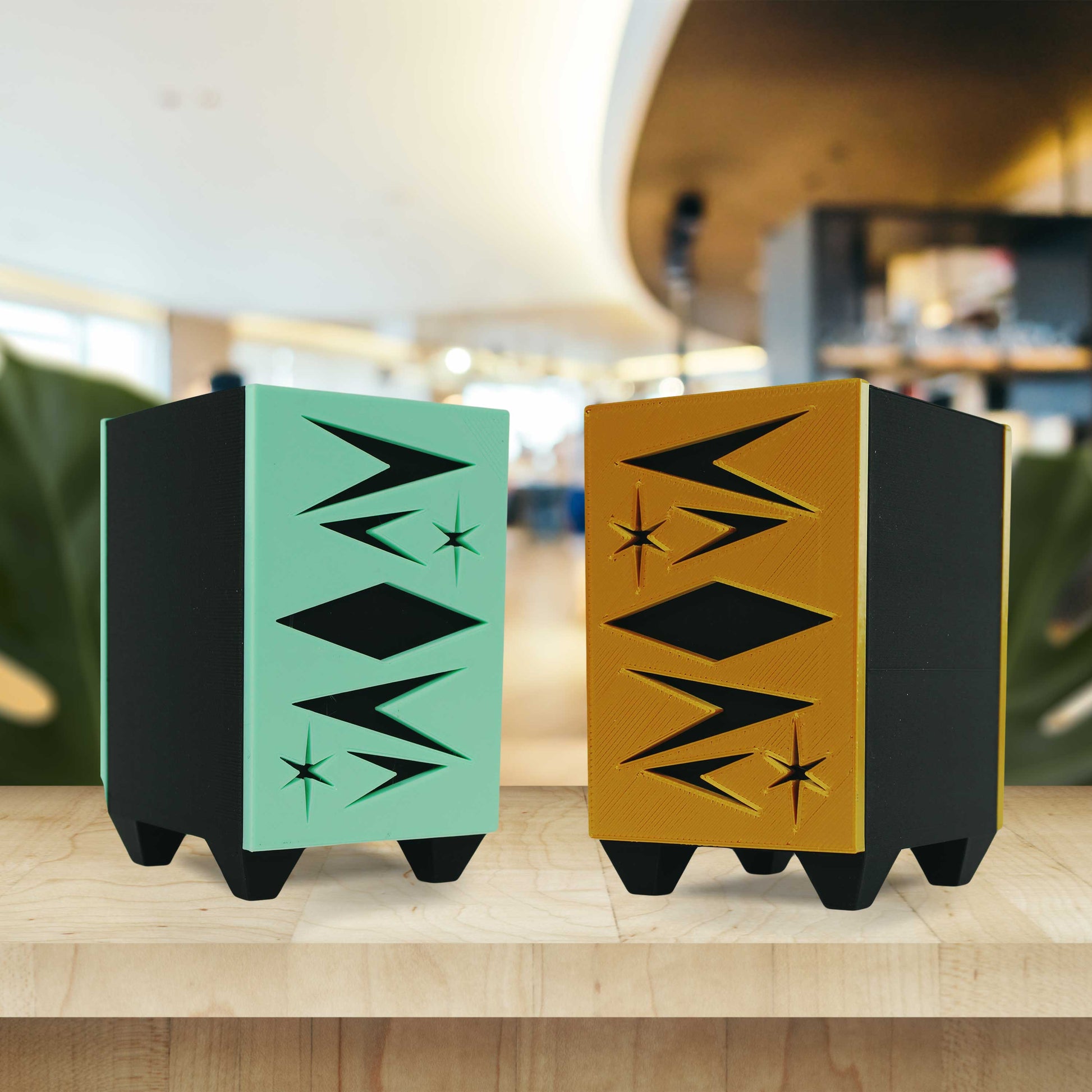 Say goodbye to messy brushes, pens or pencils that get lost in your drawers and say hello to the Midcentury Modern desk organizer, a beautifully crafted piece of art for your desk or home. You'll never lose your pens, pencils, makeup brushes or paint brushes again! Plus they are handmade 3d printed with eco-friendly materials. These desk organizers are perfect for any space and will not only make your life easier but also make your workspace look amazing.