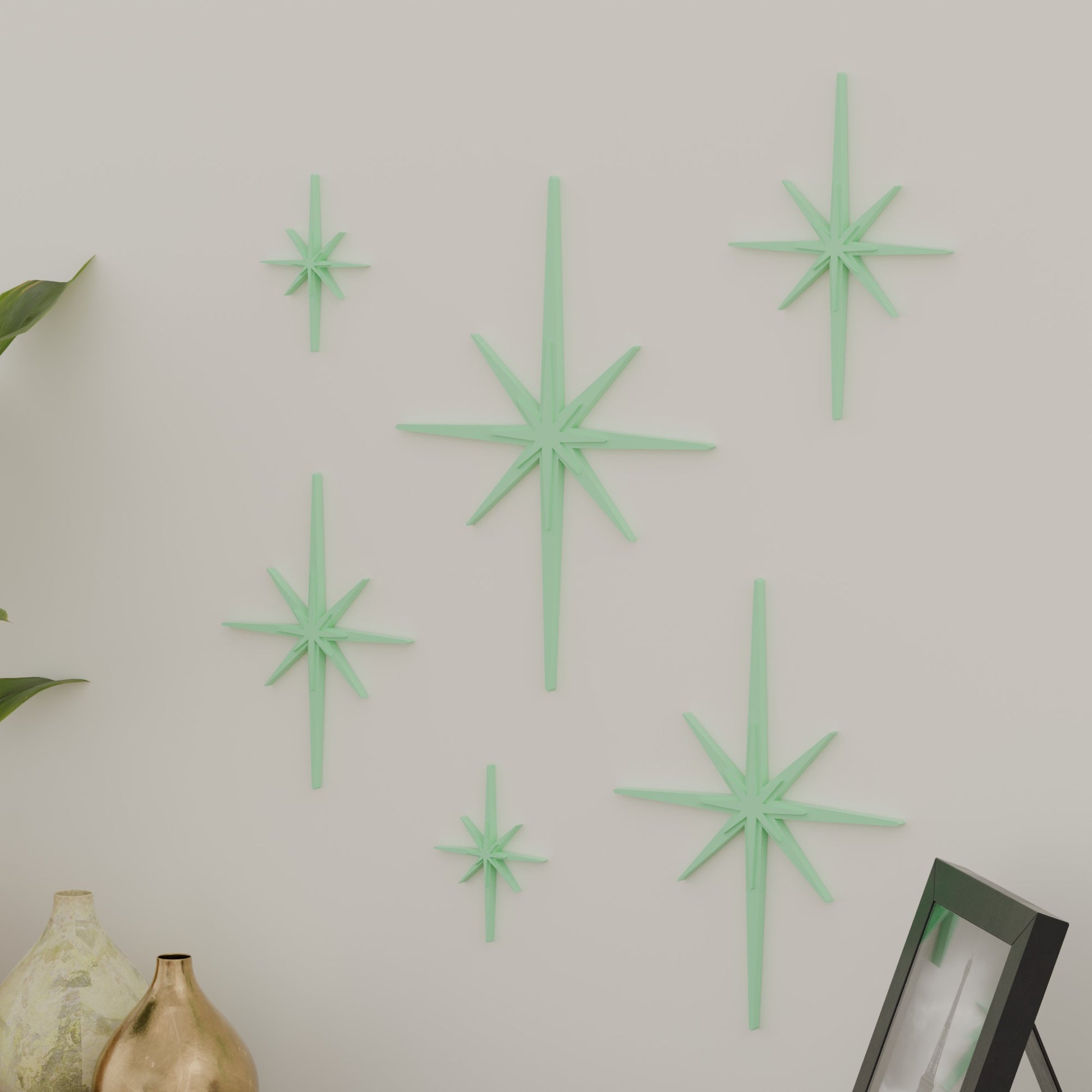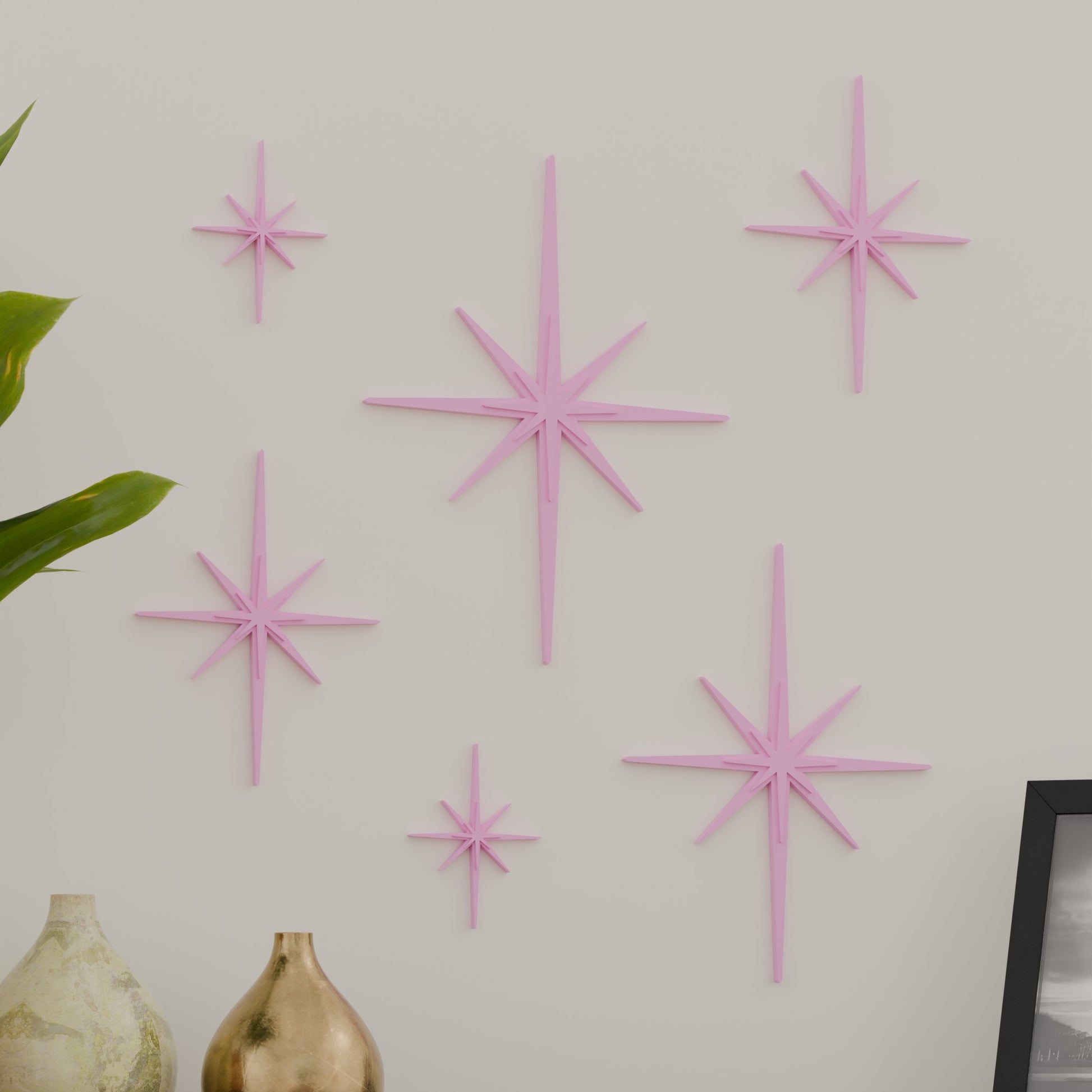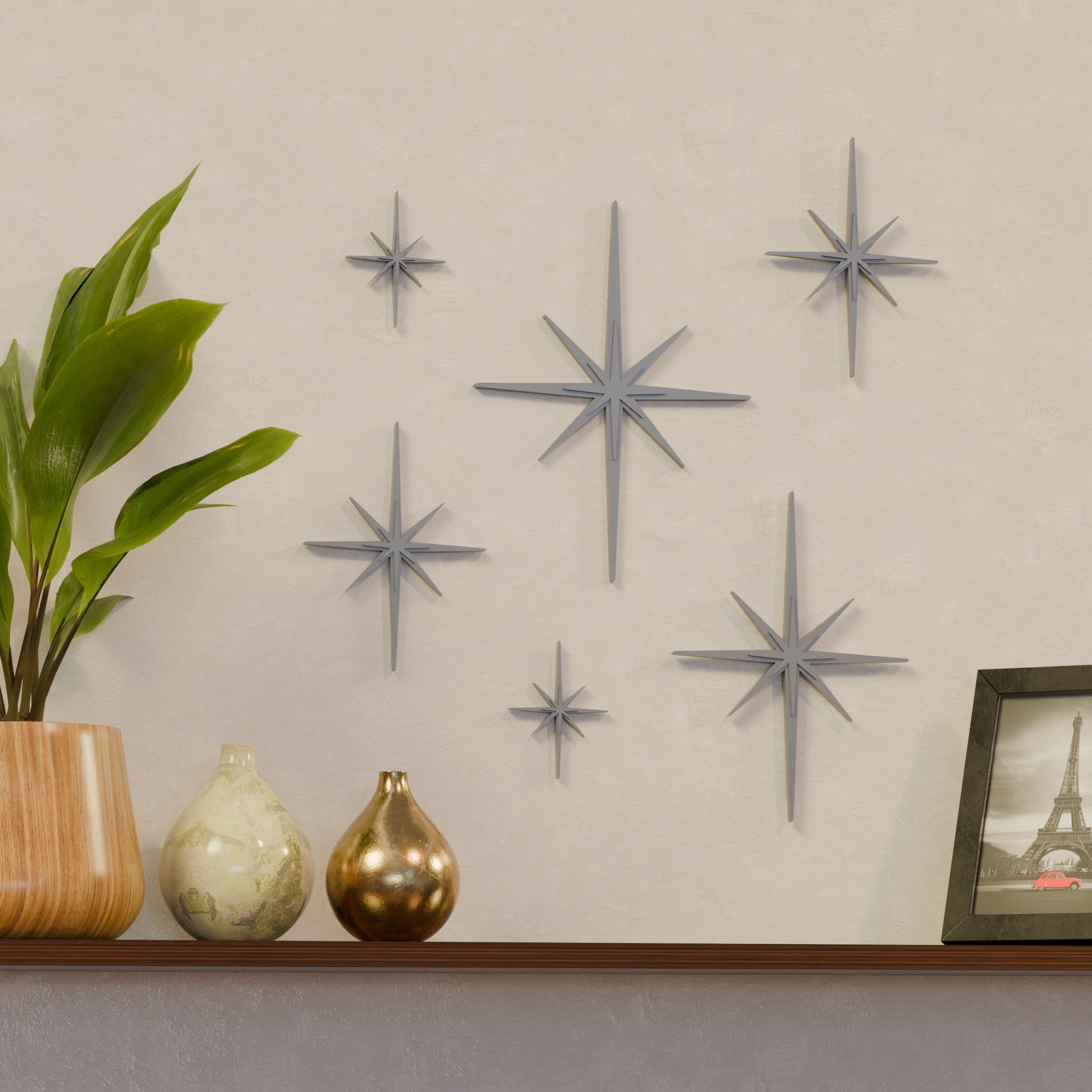 Mini Elongated Mid Century Modern Starbursts Wall Decor Set of 6