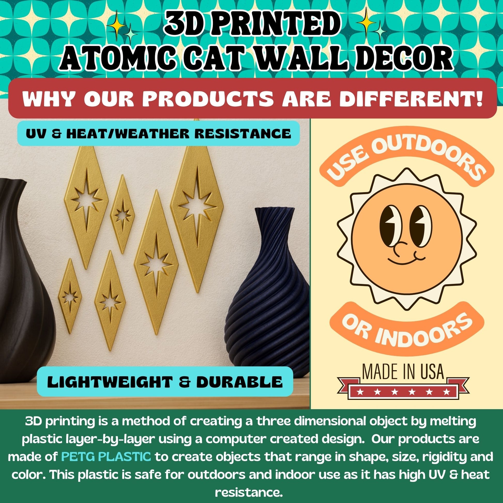 Each diamond is 3D printed from durable PETG plastic, making them UV-safe, heat-resistant, and ready to shine in any space. Perfect for patios, living rooms, kitchens, or your favorite MCM lounge nook.