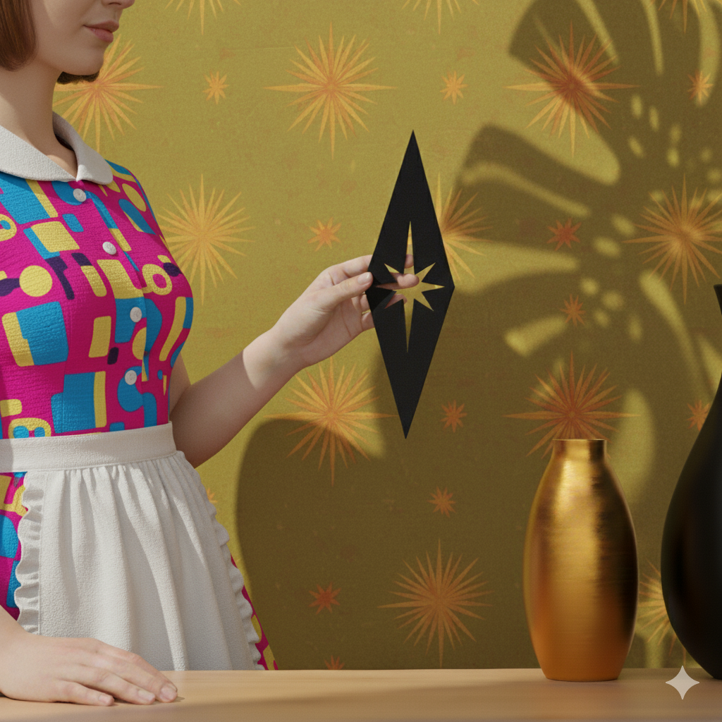 Step back into the atomic age with our sleek Mid-Century Modern Diamonds! Inspired by classic retro design, these geometric gems bring instant Googie-era flair to any wall—indoors or out.