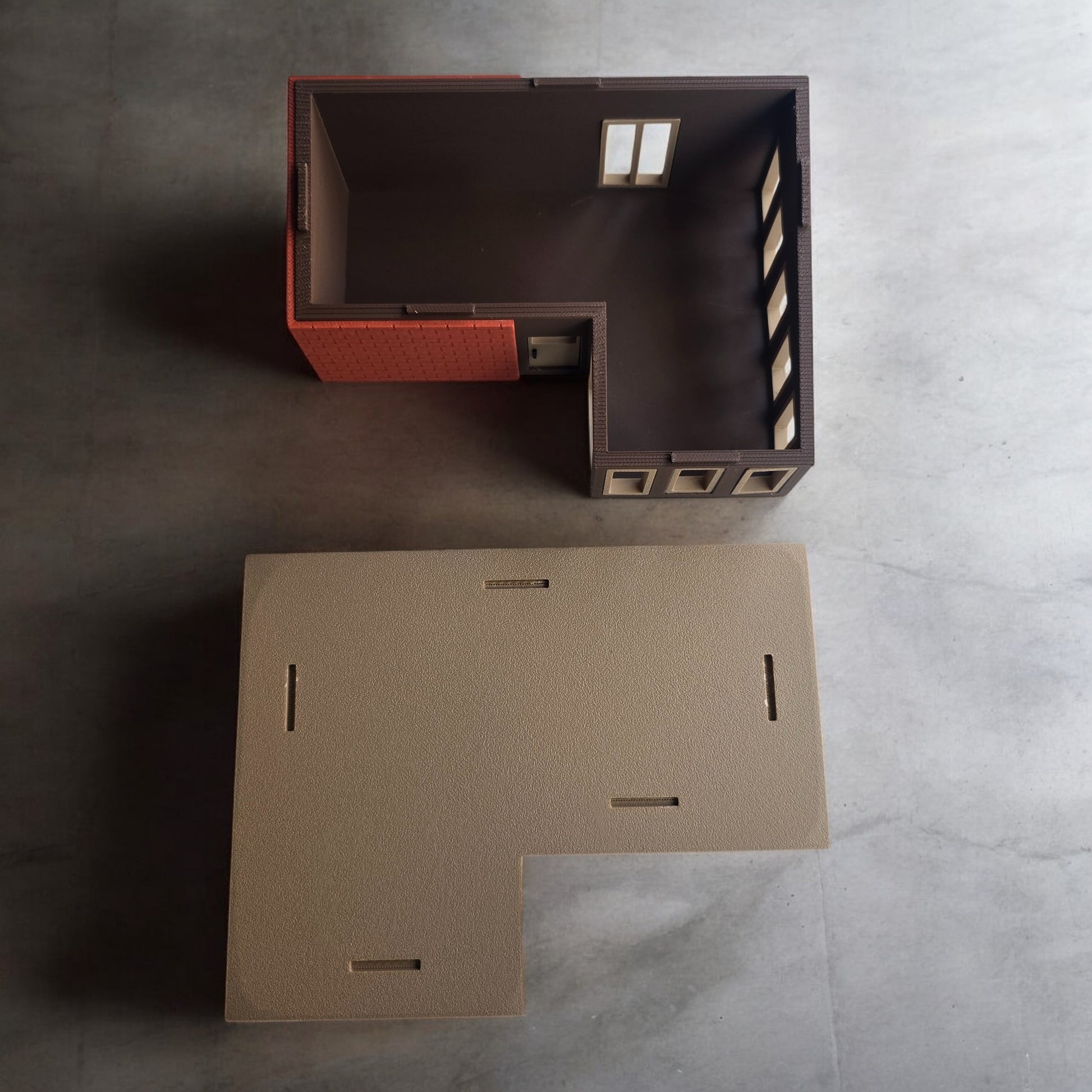 2 piece design - Roof is separated and can be attached by glue or just snapped on. This allows for optional detail for interior if you are creating a diorama or a scene.