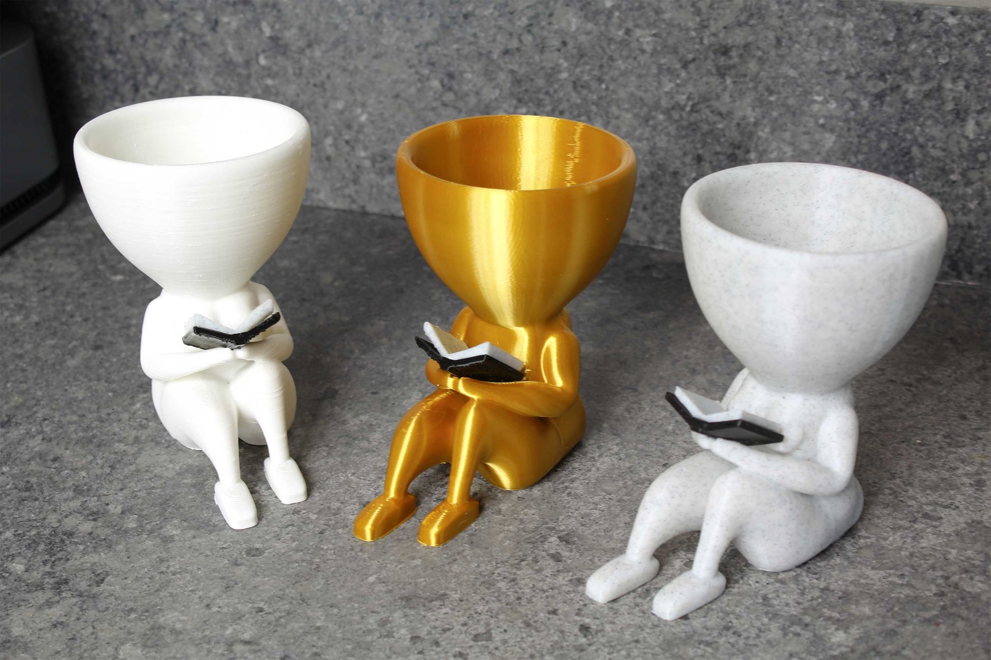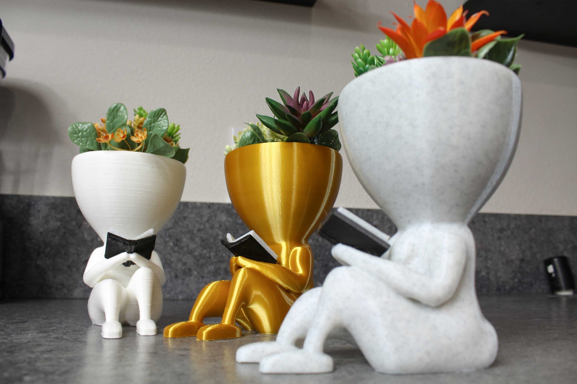 These people planter pots are 3D printed and an excellent choice for plants. These planters are perfect for all your favorite green friends, from succulents and cacti to ferns and more. Their porous material allows for better breathability, promoting healthy soil for your plants. Compared to ceramics or terracotta, these planters provide plenty of room for your plants to grow and thrive. So why not add one to your collection and give your plants the home they deserve?