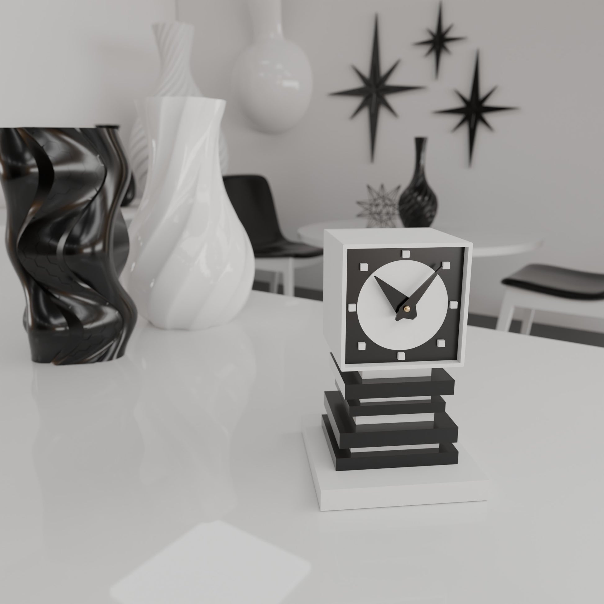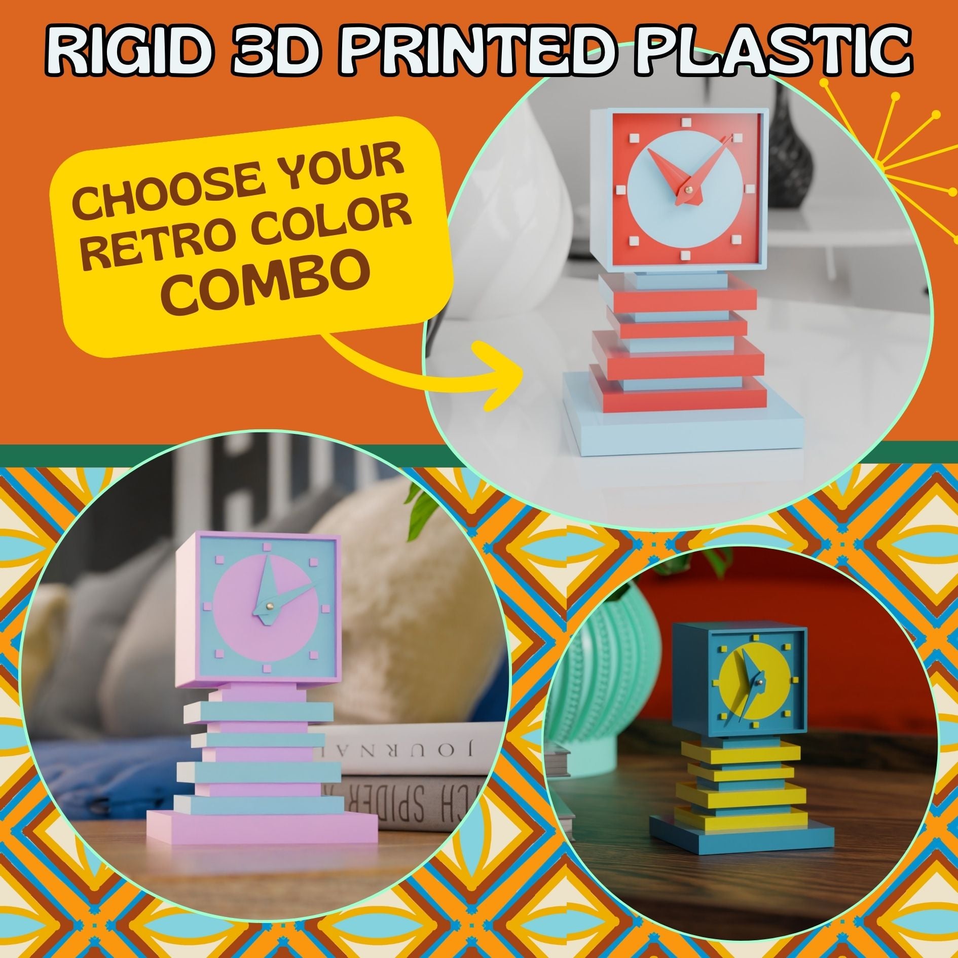 Crafted with precision using modern 3D printing technology, The Quantik features a distinctive stepped pedestal base topped with a cube-shaped clock face that channels both Googie architecture and space-race chic. It’s a nod to the past’s vision of the future — clean, playful, and unapologetically bold.