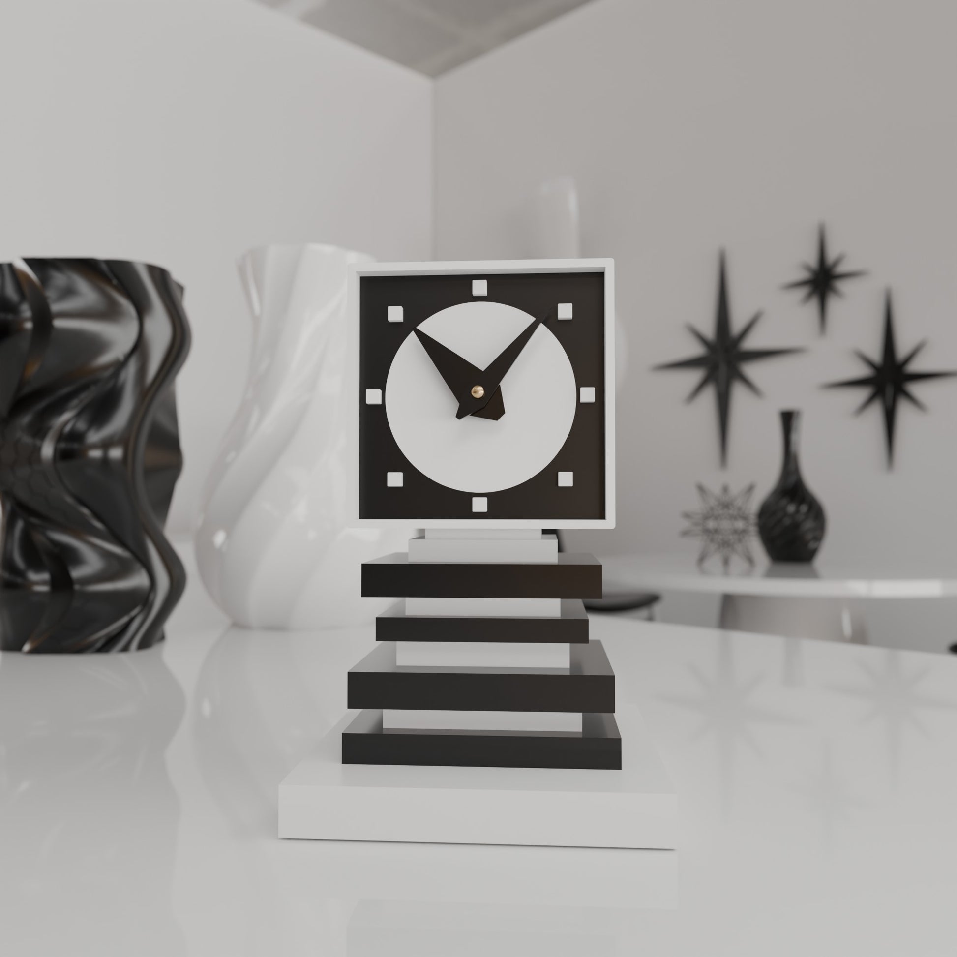 Mid-century charm meets atomic-age ambition in The Quantik — a sculptural desk clock designed to make time look timeless. Inspired by the bold lines and futuristic optimism of the 1960s, this stacked geometric timepiece turns any desk, shelf, or side table into a retro command center.