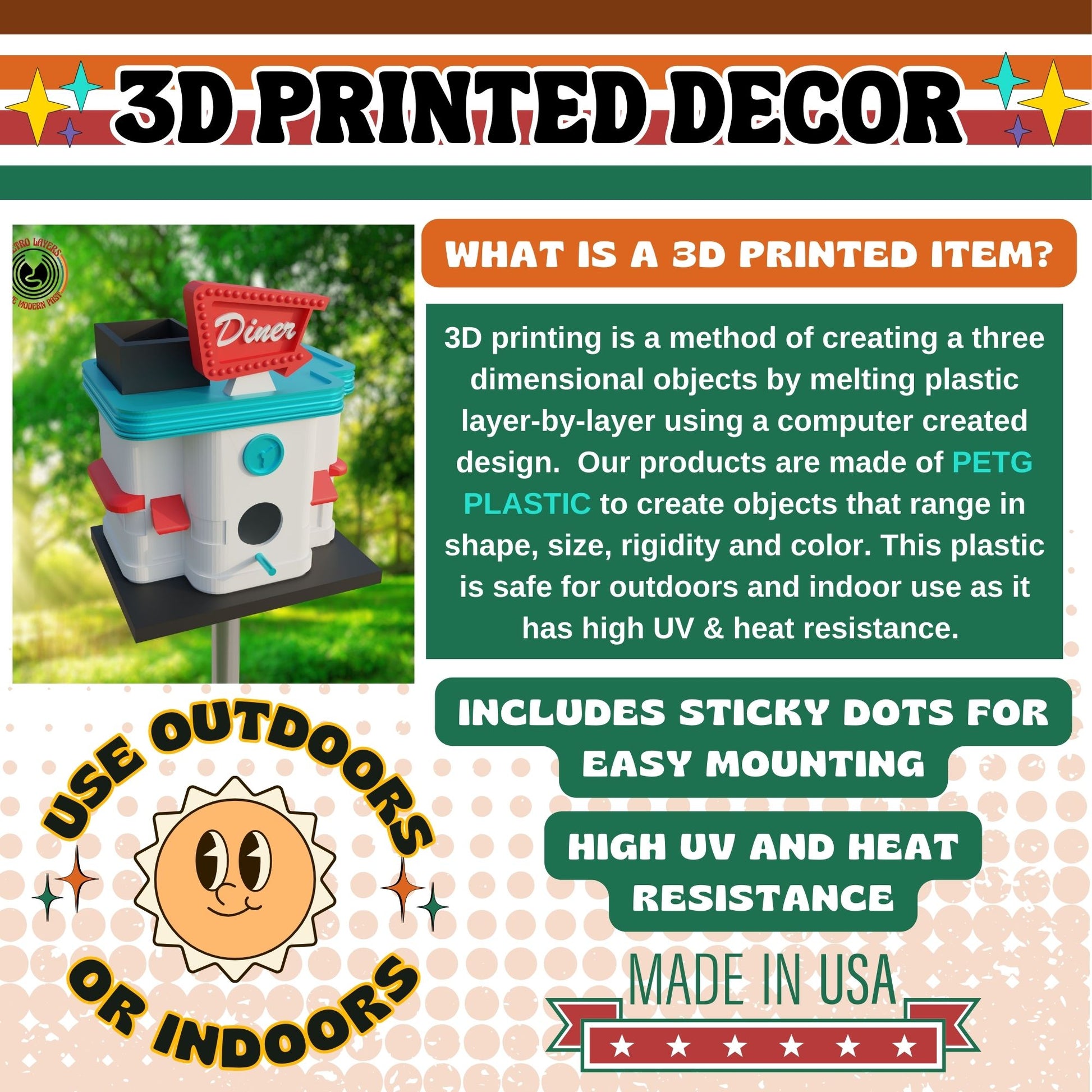 These awesome Retro Diner inspired birdhouses are completely custom made and 3d printed. All made in the USA!