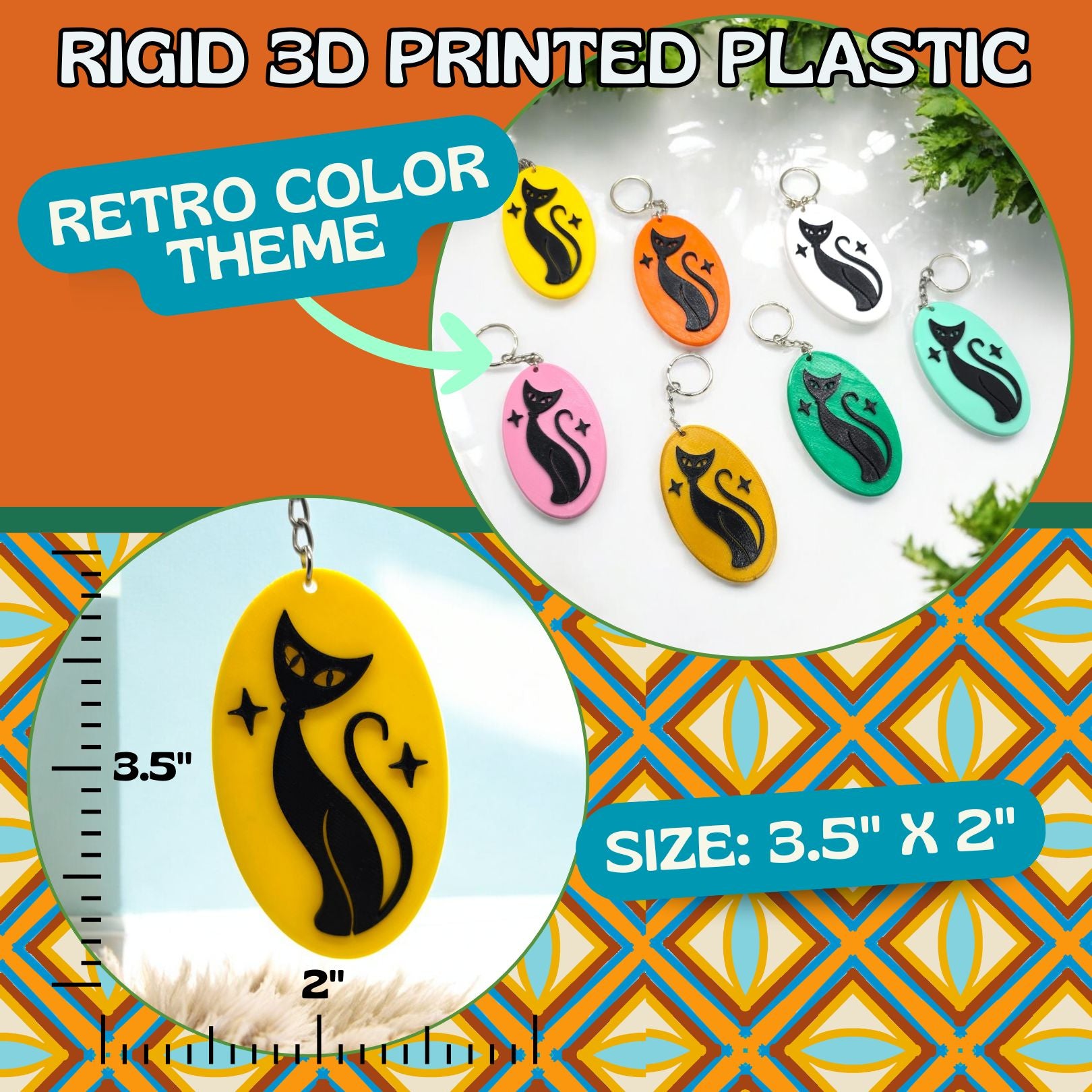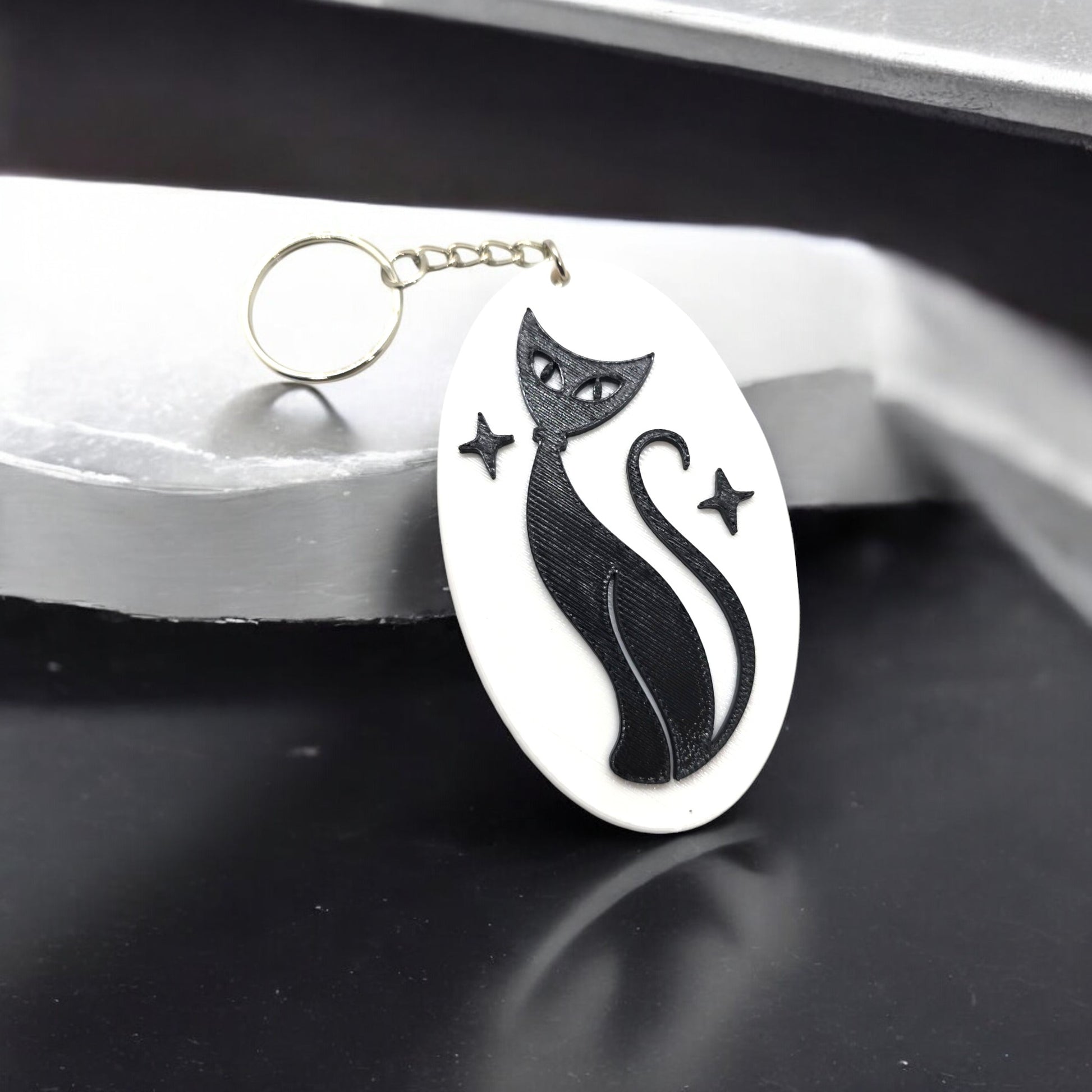 Add a touch of mid-century modern charm to your daily accessories with the Atomic Cat Keychain! Featuring a sleek, stylized black cat with atomic-era flair, this eye-catching keychain is 3D-printed from durable PETG plastic and available in a variety of vibrant retro colors. Inspired by the playful, space-age aesthetics of the 1950s and 1960s, this lightweight yet sturdy keychain is the perfect blend of vintage style and modern durability.