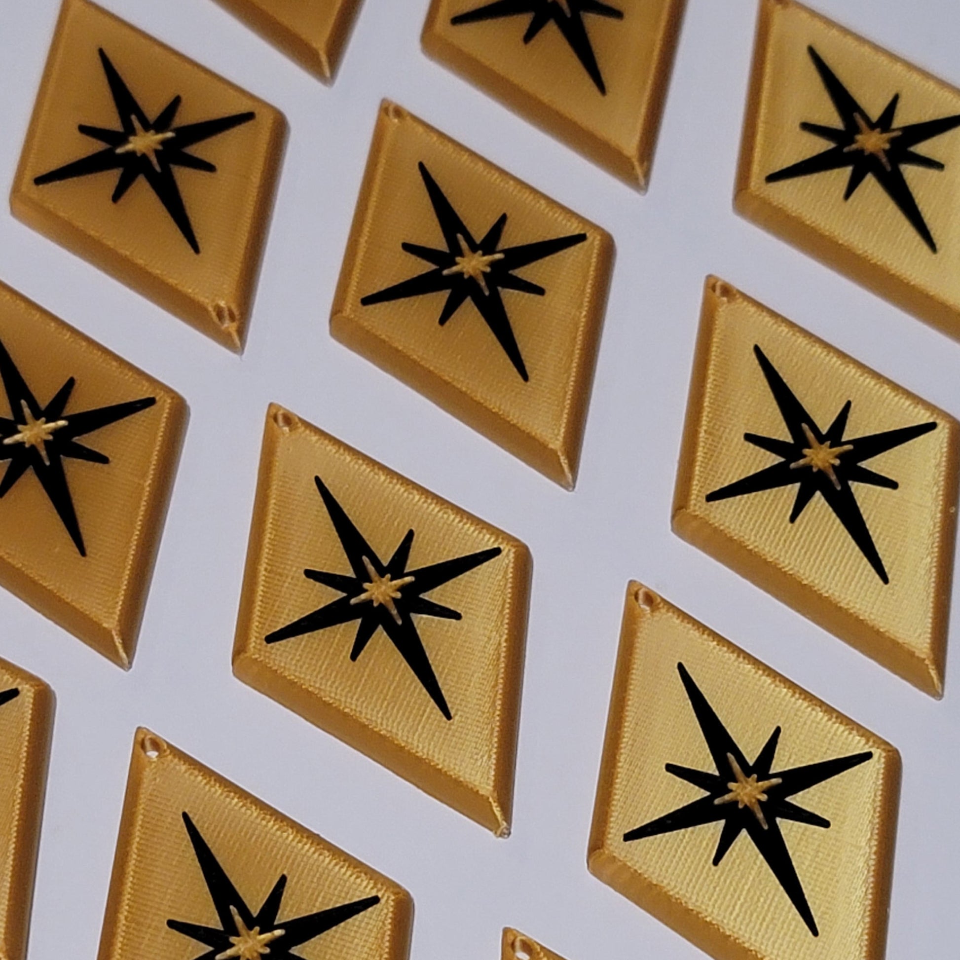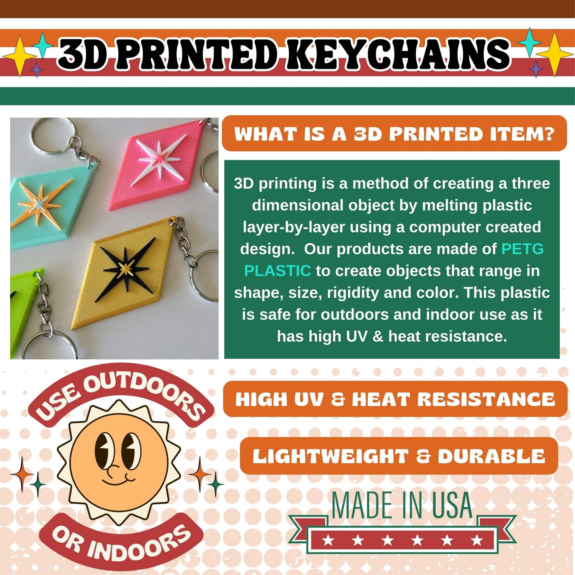 Each keychain is skillfully 3D printed to ensure precise replication of the diamond starburst pattern, capturing the essence of the era's distinctive aesthetic. The result is a stunning, three-dimensional representation of the timeless design, guaranteed to catch the eye of admirers.
