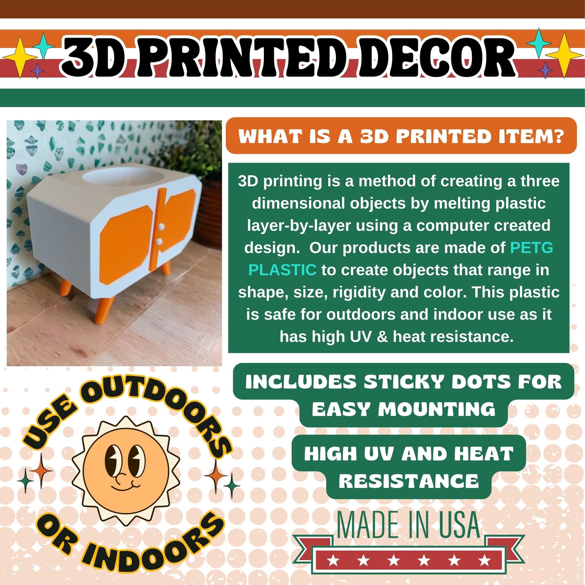 Our retro planters are built to last, made with one of the highest tensile strengths in 3D printing and a high infill for maximum durability. They're lightweight and easy to move, making them perfect for anywhere in your home or office.