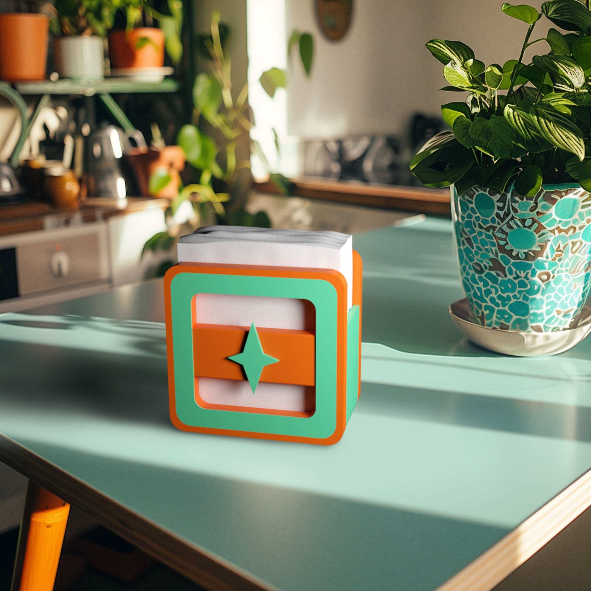 Presenting the Space Age Squared Orbiter Napkin Holder, a celestial addition to your entertaining arsenal!