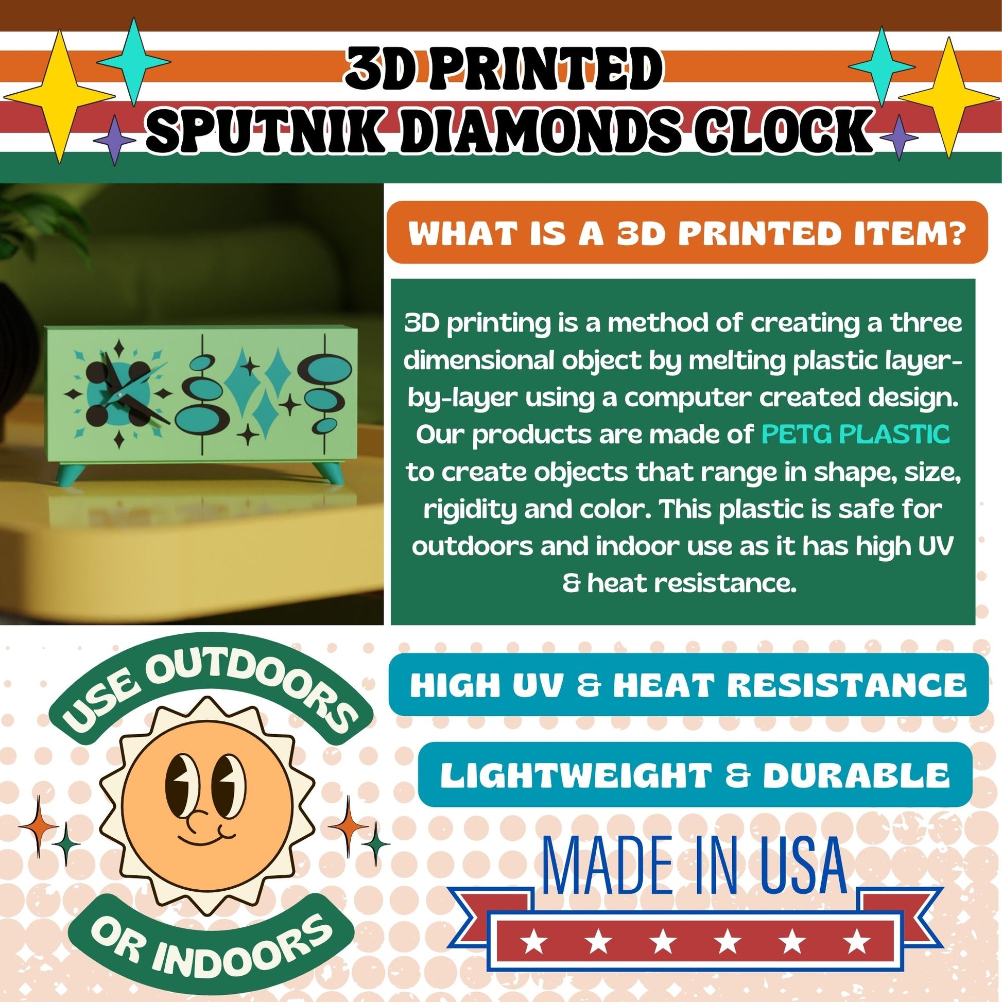 A Timepiece That Turns Heads Whether you're channeling 1960s atomic vibes or adding a splash of futuristic cool to your space, the Sputnik Diamonds Desk Clock is a bold statement in both function and form. Ideal for home offices, living rooms, or anywhere that needs a pop of vintage space-age personality.