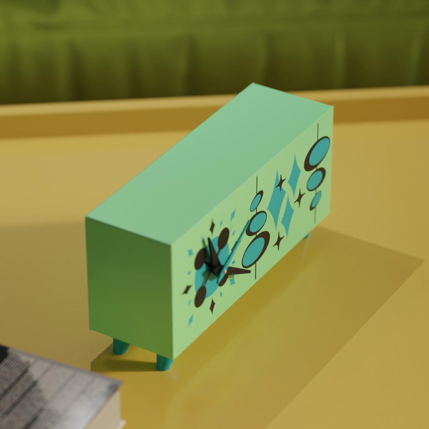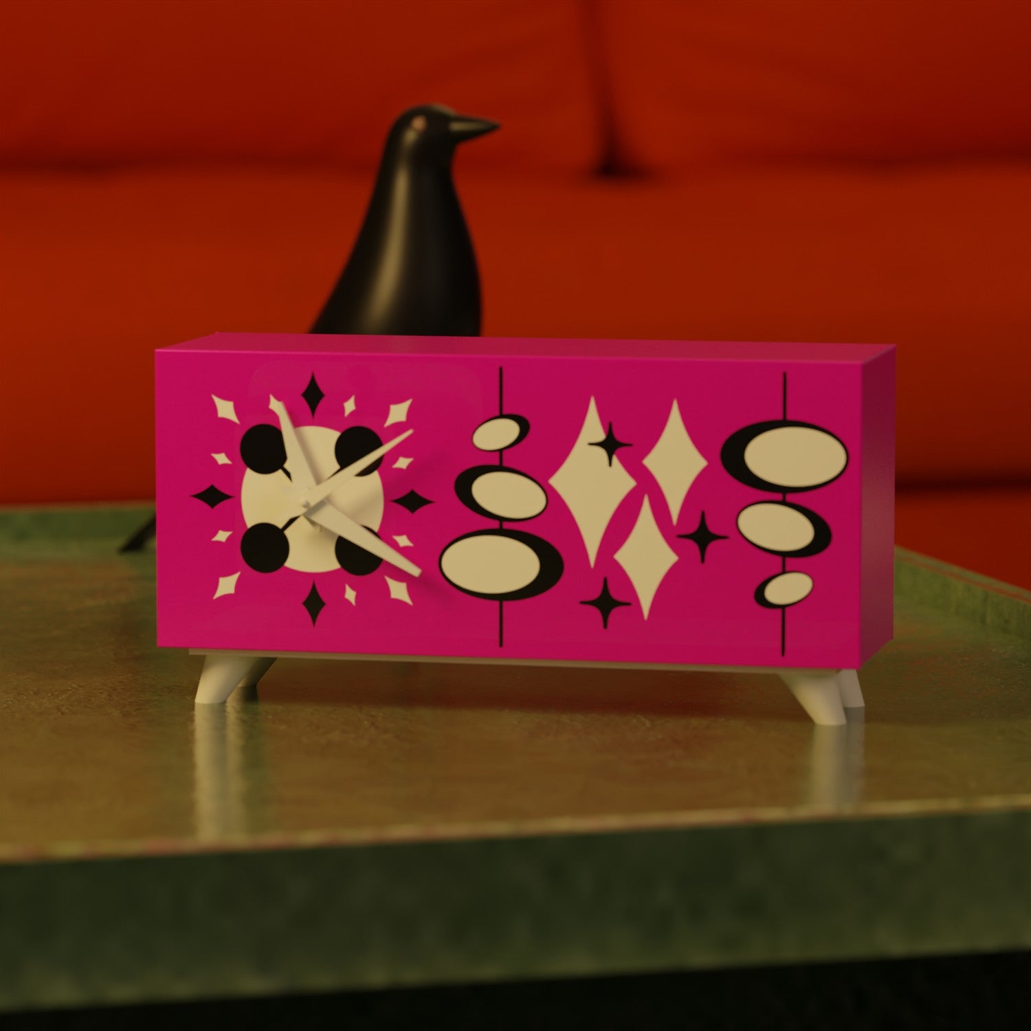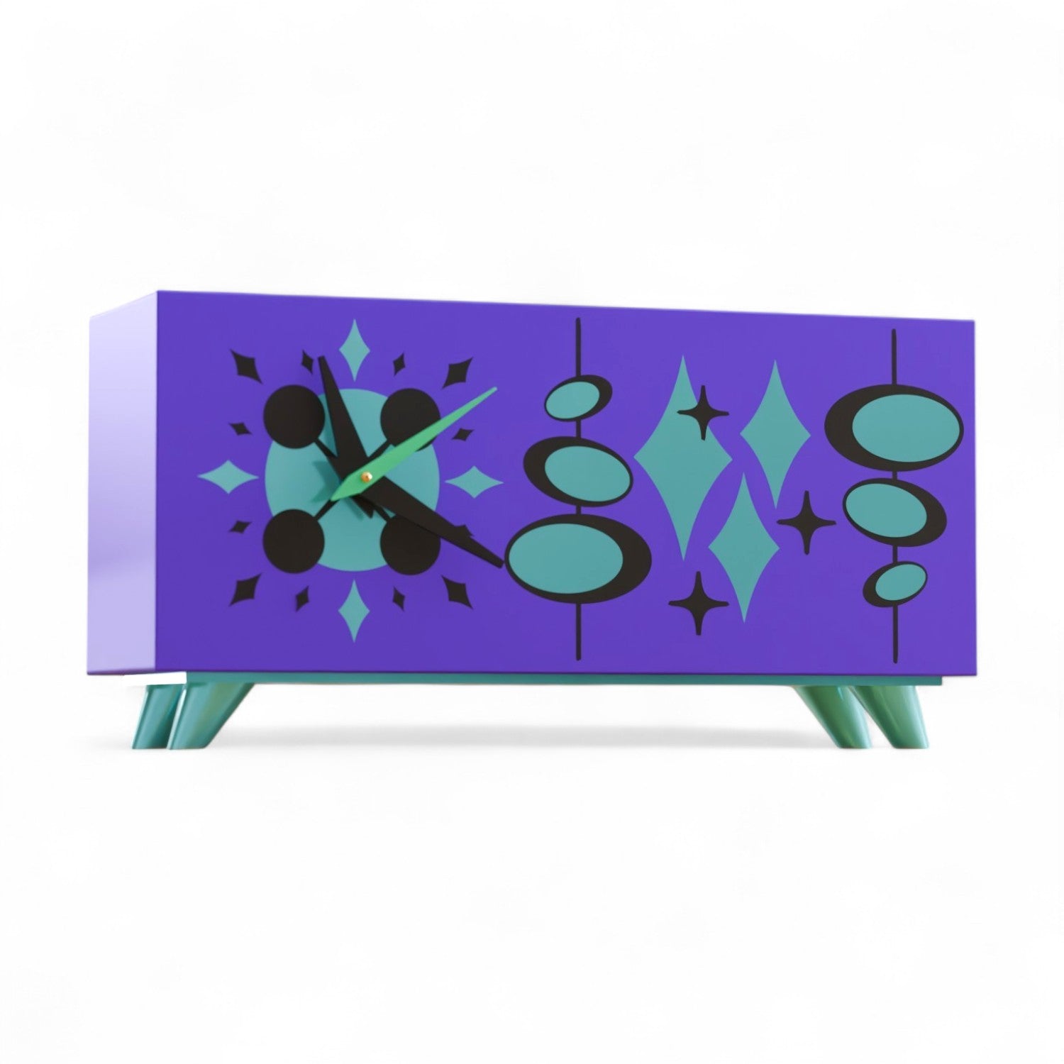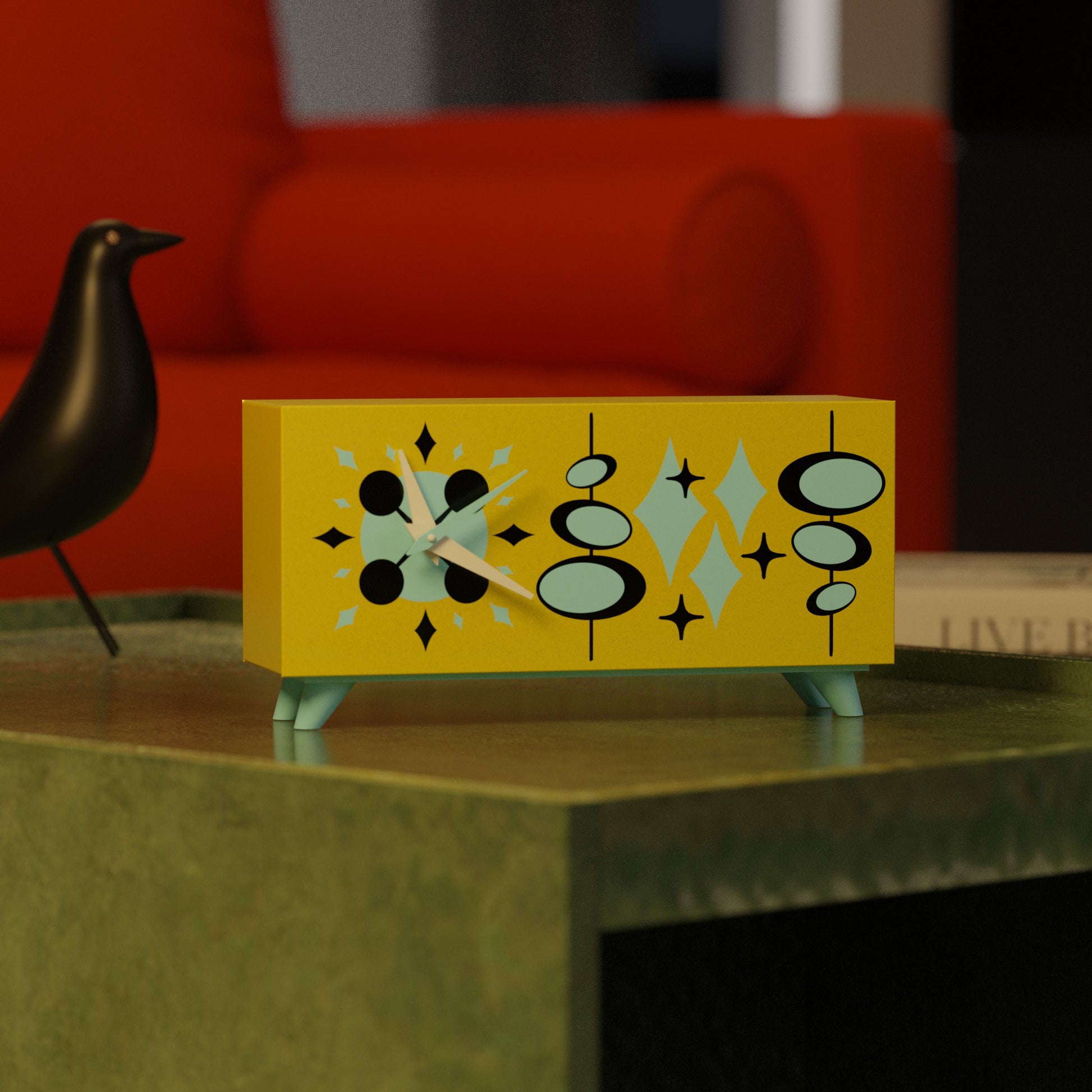 Mid-Century Modern Elegance with a Futuristic TwistThe Sputnik Diamonds Desk Clock features a distinctive magnetic diamond-patterned cover that adds a sculptural statement while allowing effortless access to the clock mechanism. Supported by sleek, angled atomic-style legs, this clock captures the essence of retro futurism and serves as a standout piece in any room.