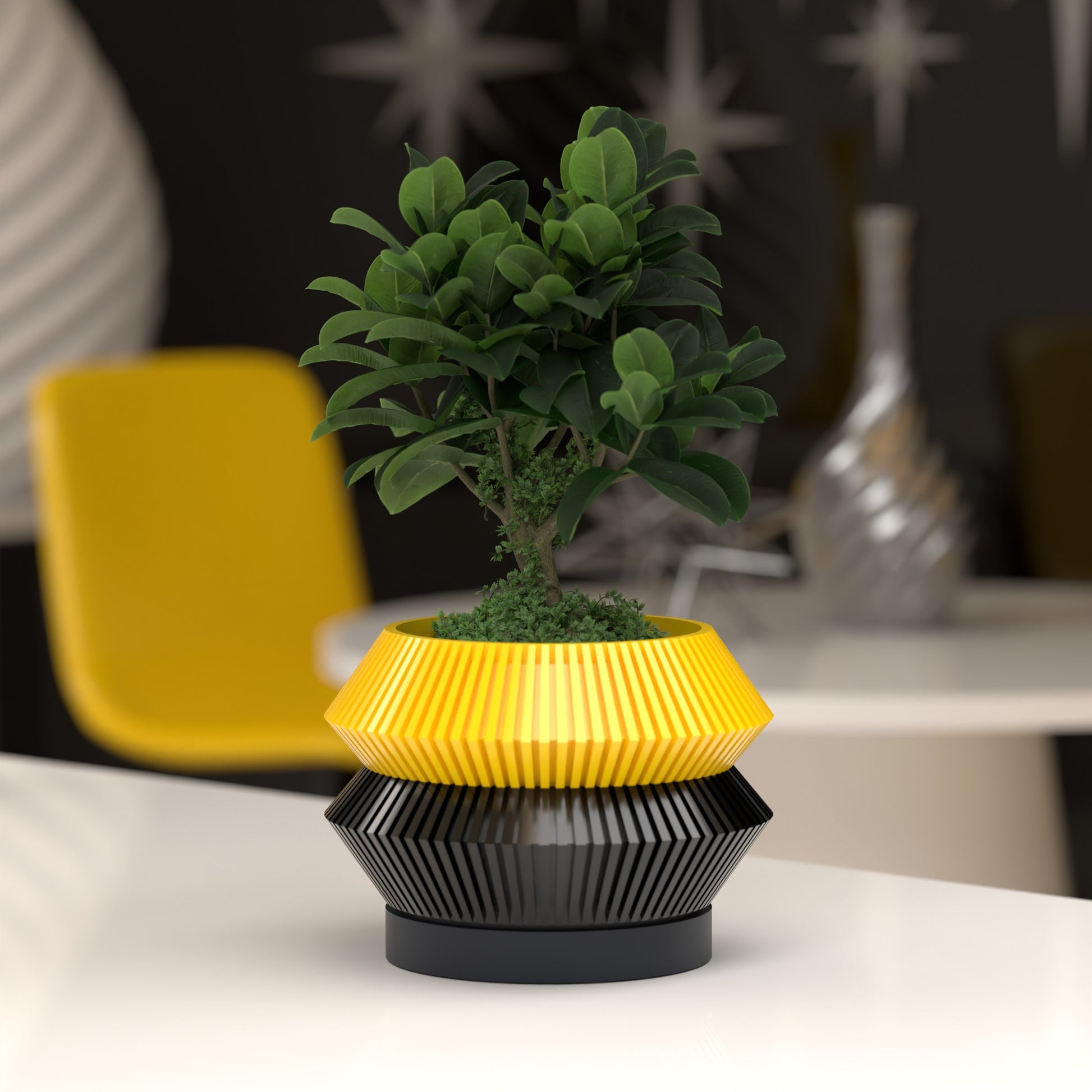 Whether paired with a vintage typewriter, a lava lamp, or minimalist decor, the Winshire’s dual-conical shape and sharp vertical ridges create a captivating play of light and shadow. It isn't just a pot; it's a conversation piece that brings a touch of "The Jetsons" to your living room.