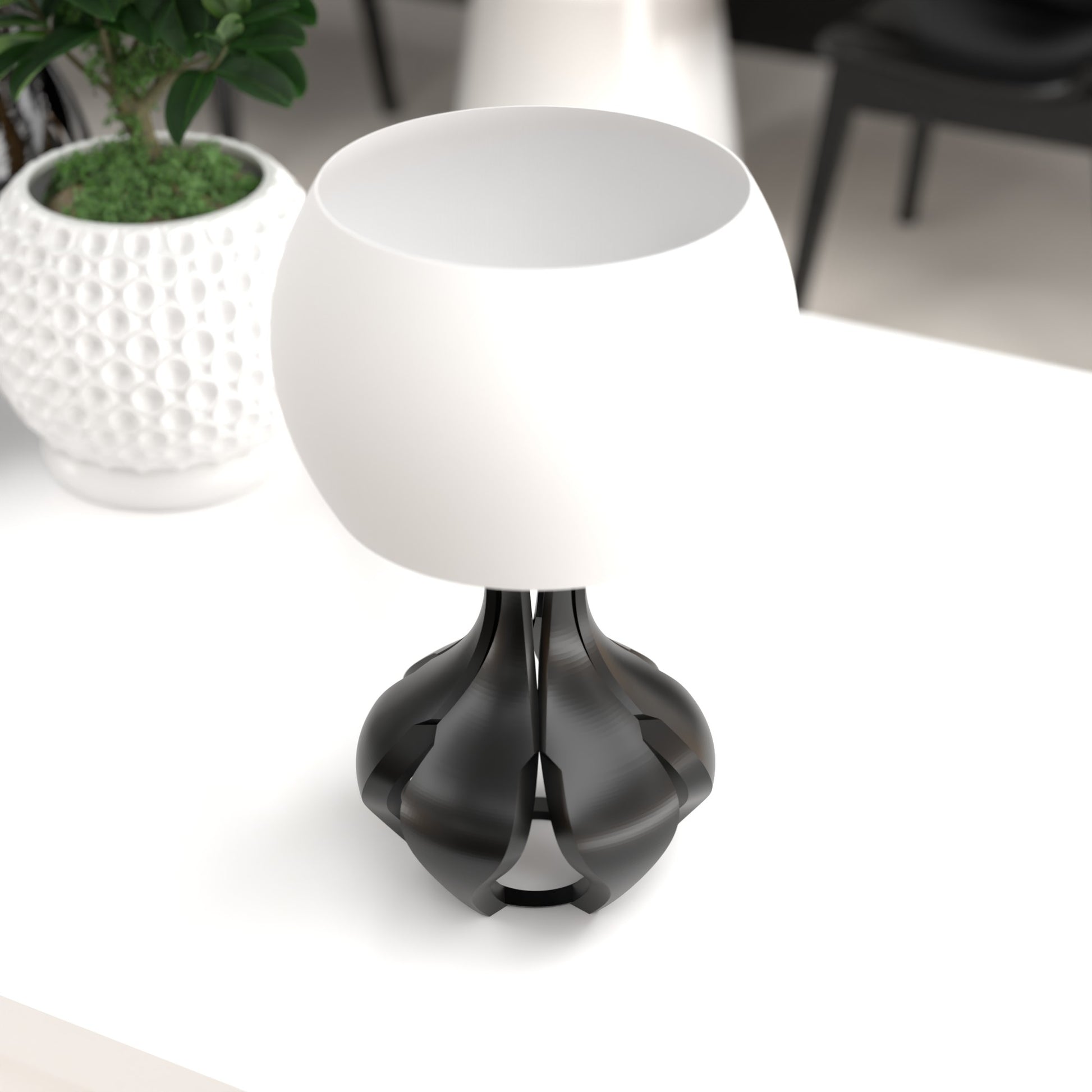 From base to shade, each Yunari Lamp is expertly 3D printed using premium PETG plastic, offering durability, a flawless matte finish, and a uniquely modern texture you won’t find in mass-produced lamps. This method allows for its stunning, otherworldly form—somewhere between rocket thrusters and intergalactic flora.